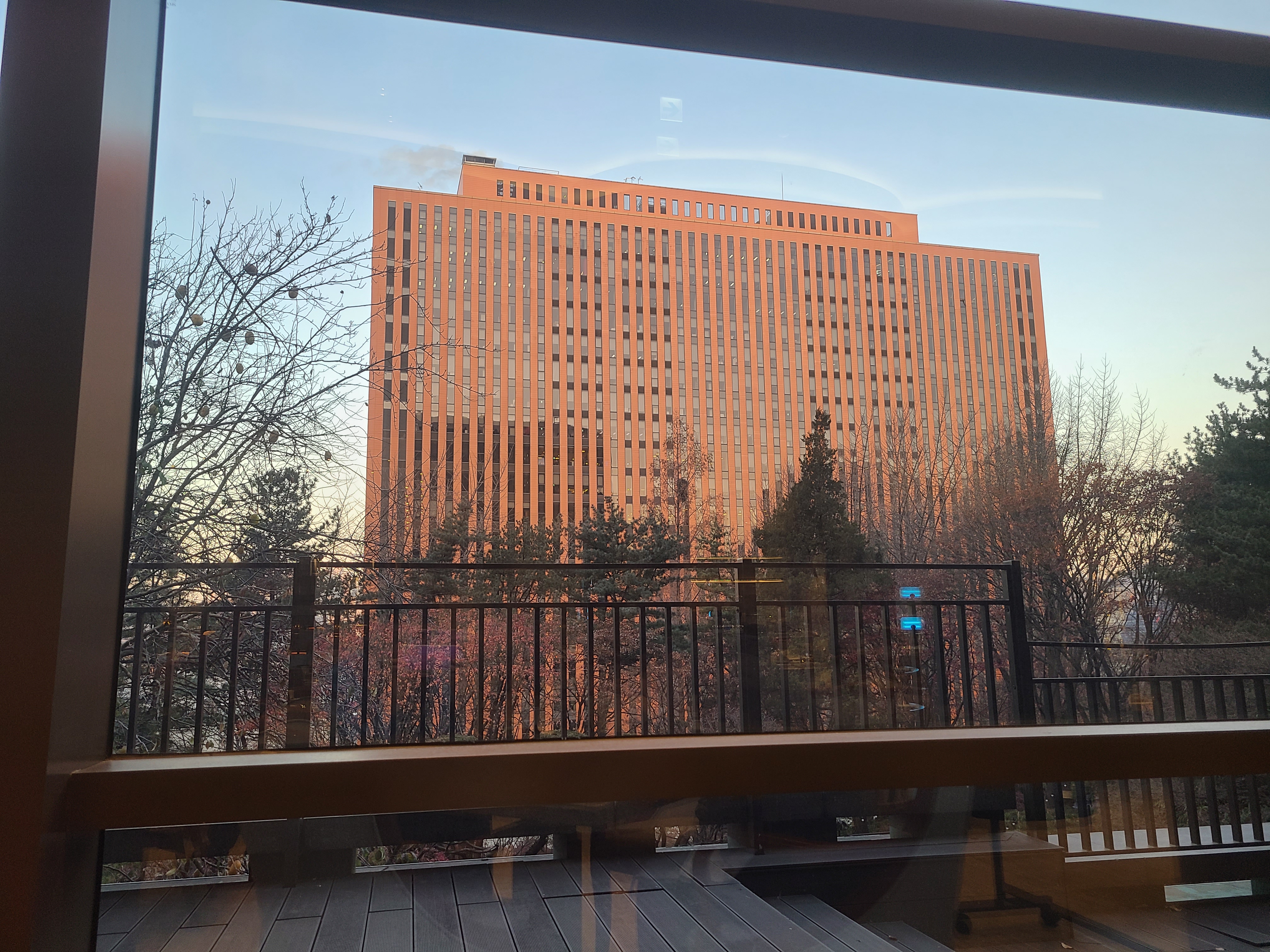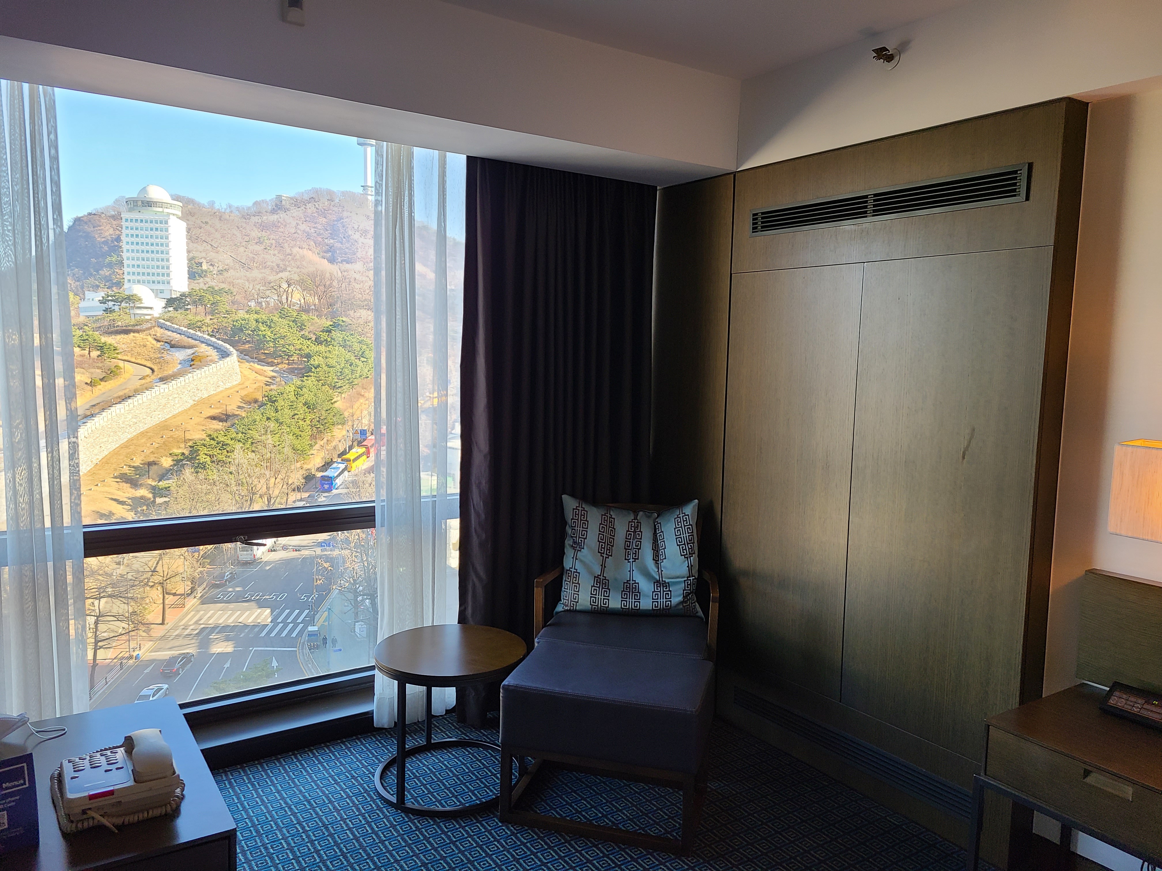 객실 내부의 특별함은 없었지만 커튼을 열고 남산 뷰를 보니 마음이 탁 트이는 것 같았다. 늘 보는 남산이지만 호텔에 머무는 내내 창가에서 눈을 떼지 못했다. 막상 뷰를 보고 나니 고층 배정을 받지 못한 게 아쉬워졌다. 누워서도 남산 뷰를 보고 싶어서 새벽녘 침대에 거꾸로 누워서 창가를 하염 없이 바라봤었다.