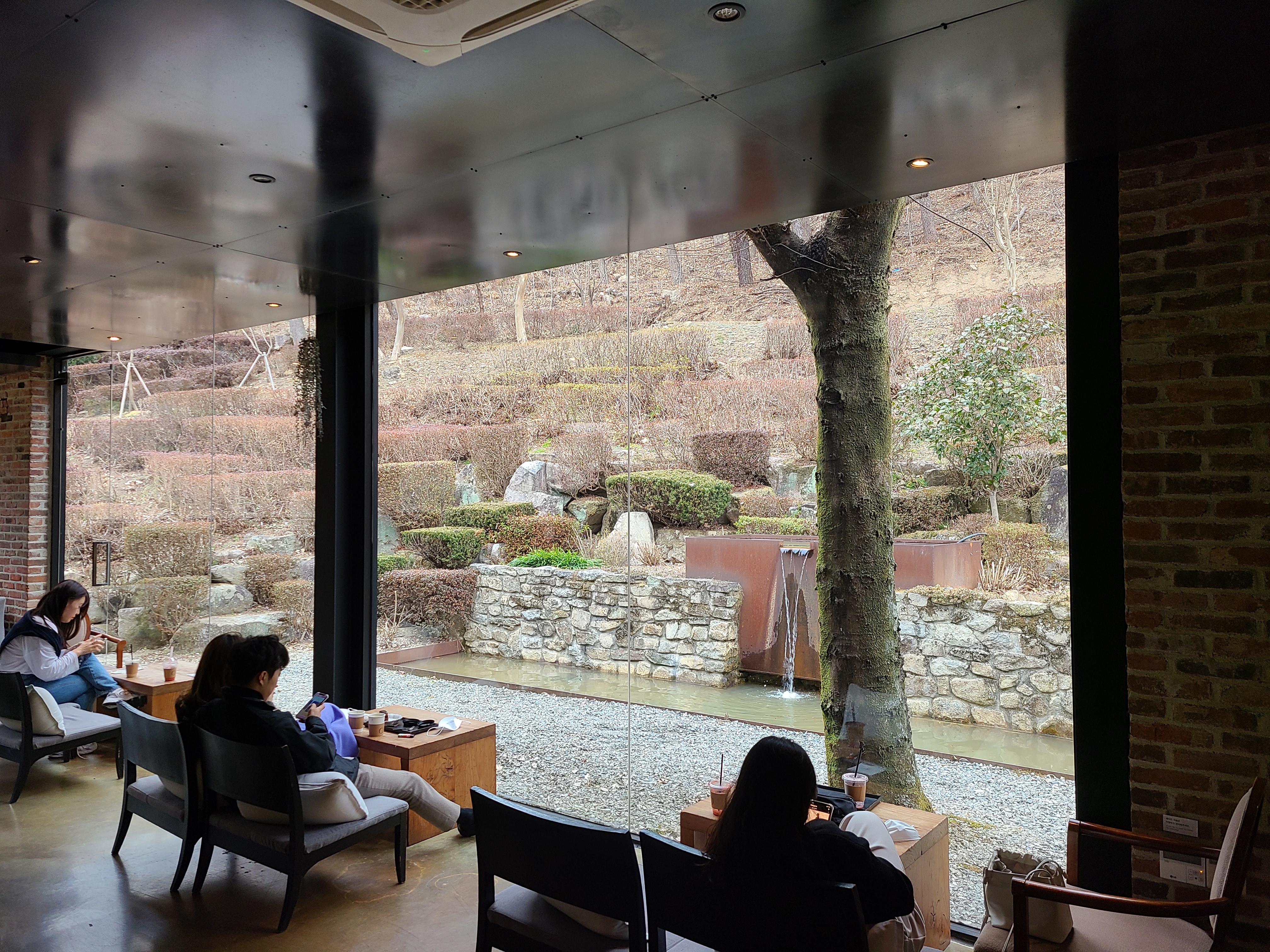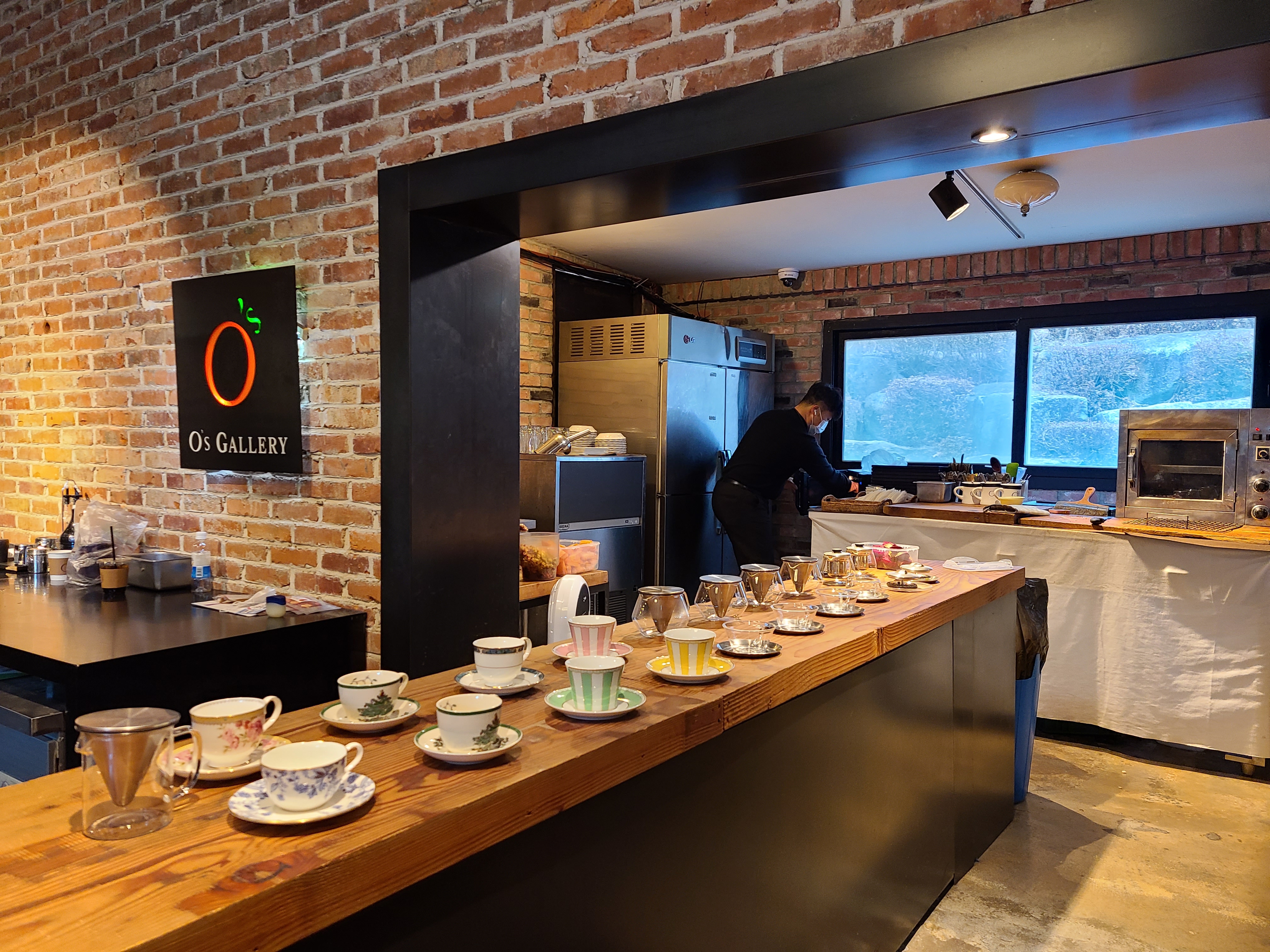 식사를 마친 후 커피를 마시기 위해 주변의 오스갤러리로 향했다. 개인적으로 오성제 나무에서 인생 샷을 남기고 싶었지만 우리 집 식구가 춥다며 눈으로만 보자는 설득에 못 이겨 카페 안으로 바로 들어갔다. 카페에 들어서자 마자 인스타에서 많이 본 장소가 눈에 들어왔다. 정신없이 사진을 찍고, 음료를 주문하고 자리를 잡았다. 카페 곳곳의 인테리어가 예뻤고, 멍 때리기에 좋은 공간이라는 생각이 들었다.