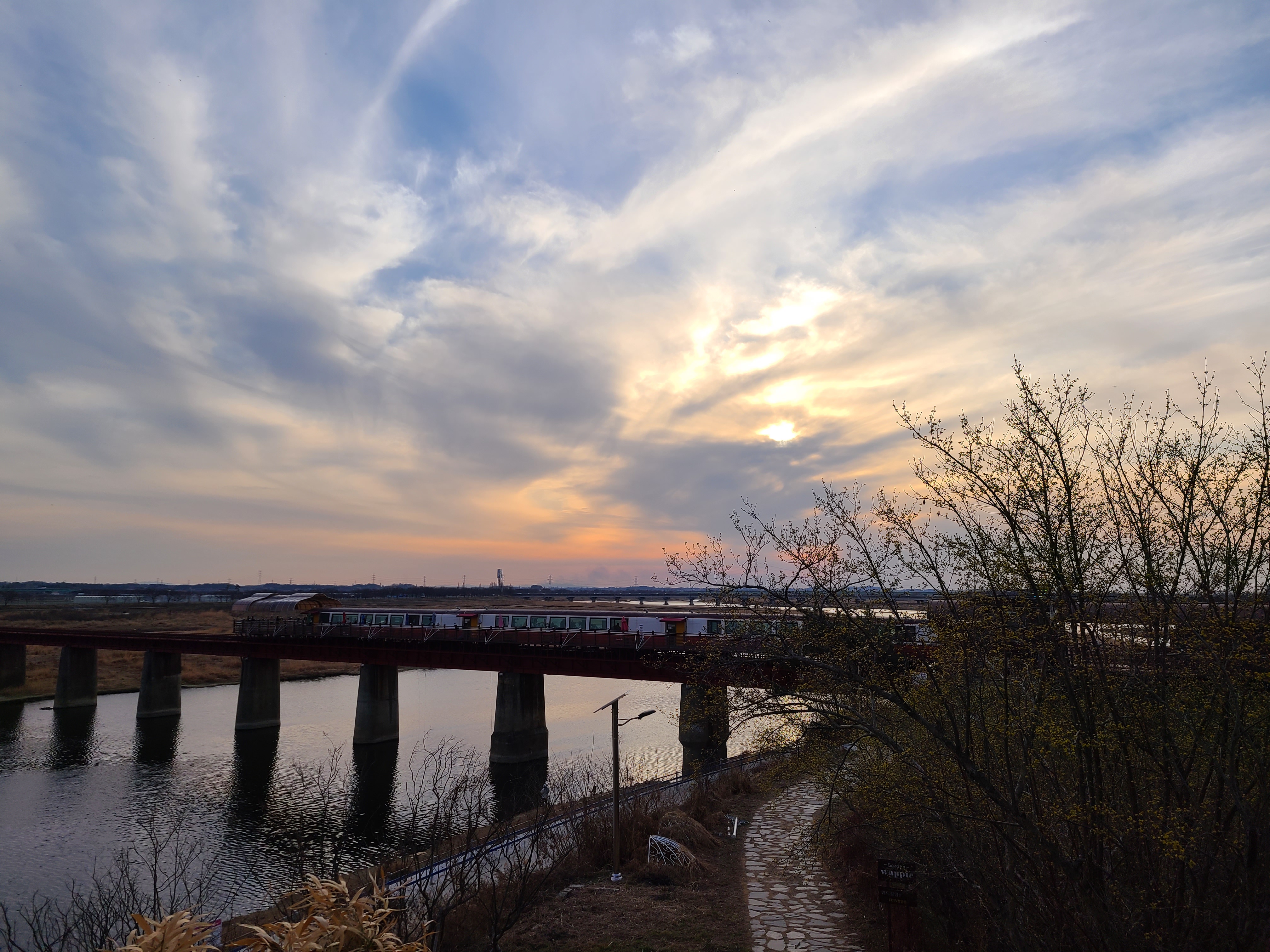 산속등대를 돌아보고 나니 시간은 어느 덧 5시 즈음이 되었다. 비비정으로 이동했다. 비비정은 만경 강가에 위치한 정자이다. 40~50년 전 까지만 해도 만경 강가에는 백사장이 펼쳐져 있었다고 한다. 비비정을 사이에 두고 전라선 철교와 폐철교를 바라보고 있으니 시간이 흐른다는 것의 의미를 생각하게 되었다. 우리 집 식구와 아무 말없이 폐철교의 끝을 바라보며 시간을 보냈다.