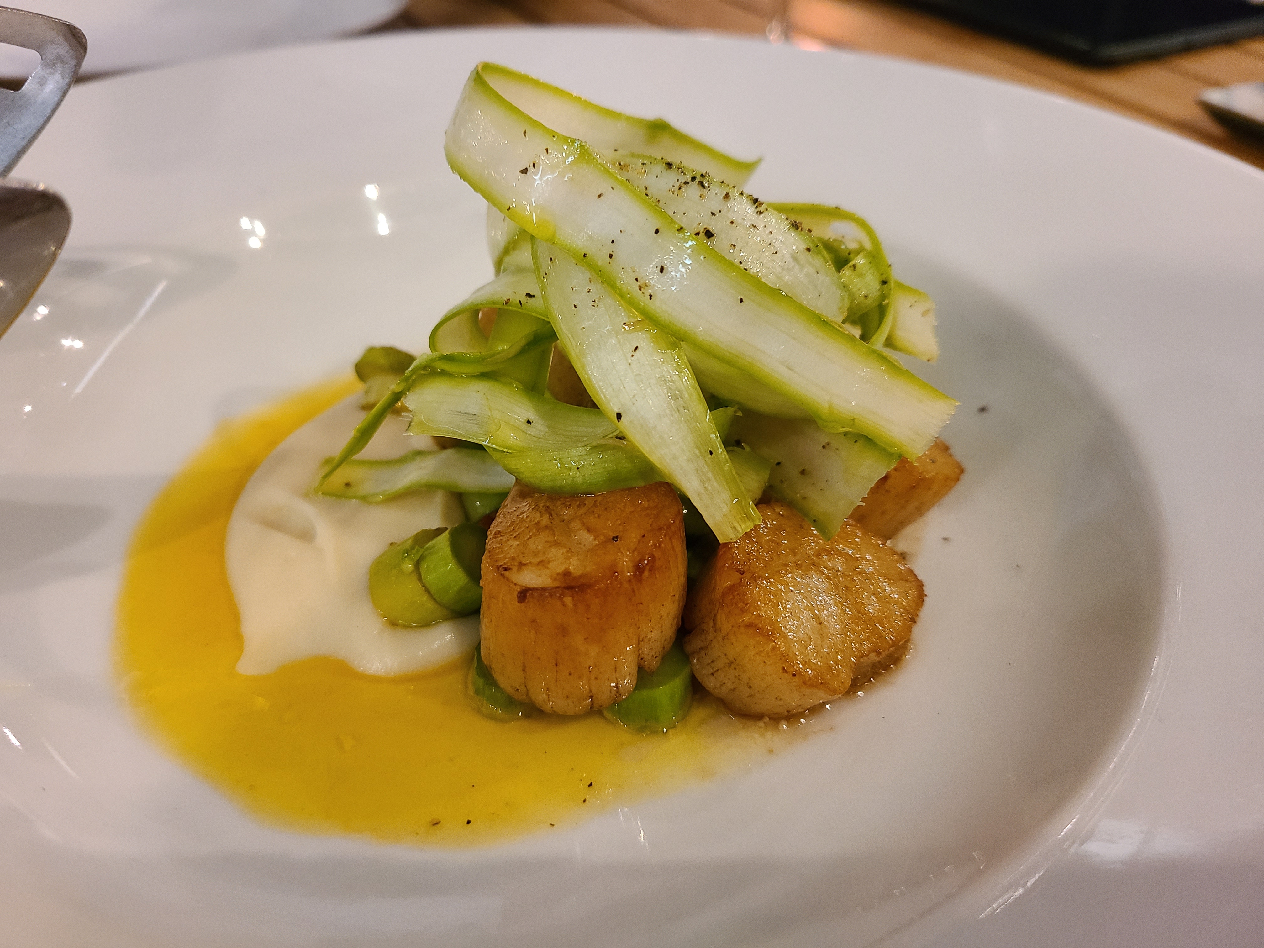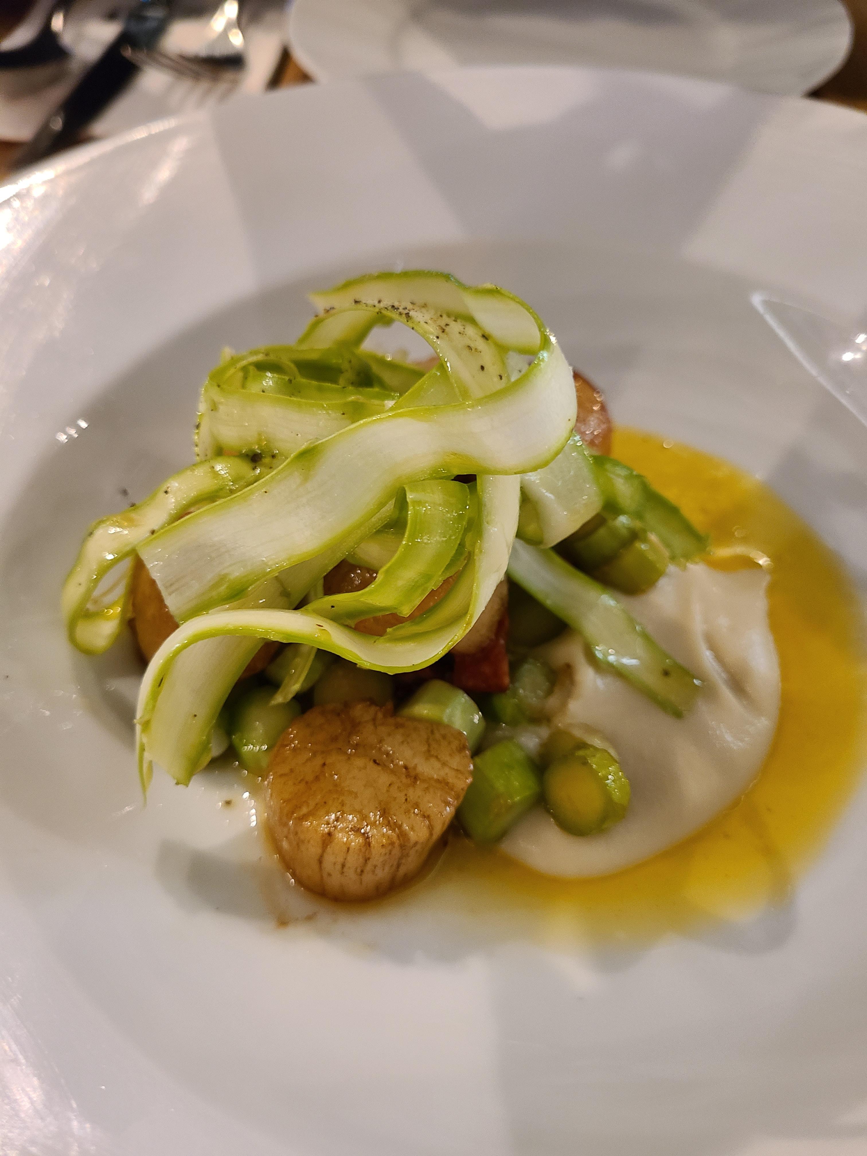 구운 아스파라거스와 관자, 유자소스(28,000원)