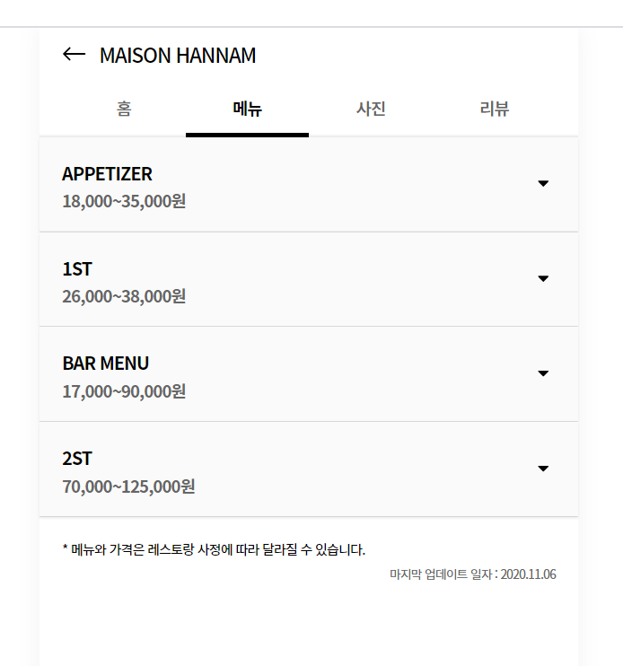 예약: app.catchtable.co.kr/ct/shop/maisonhannam
