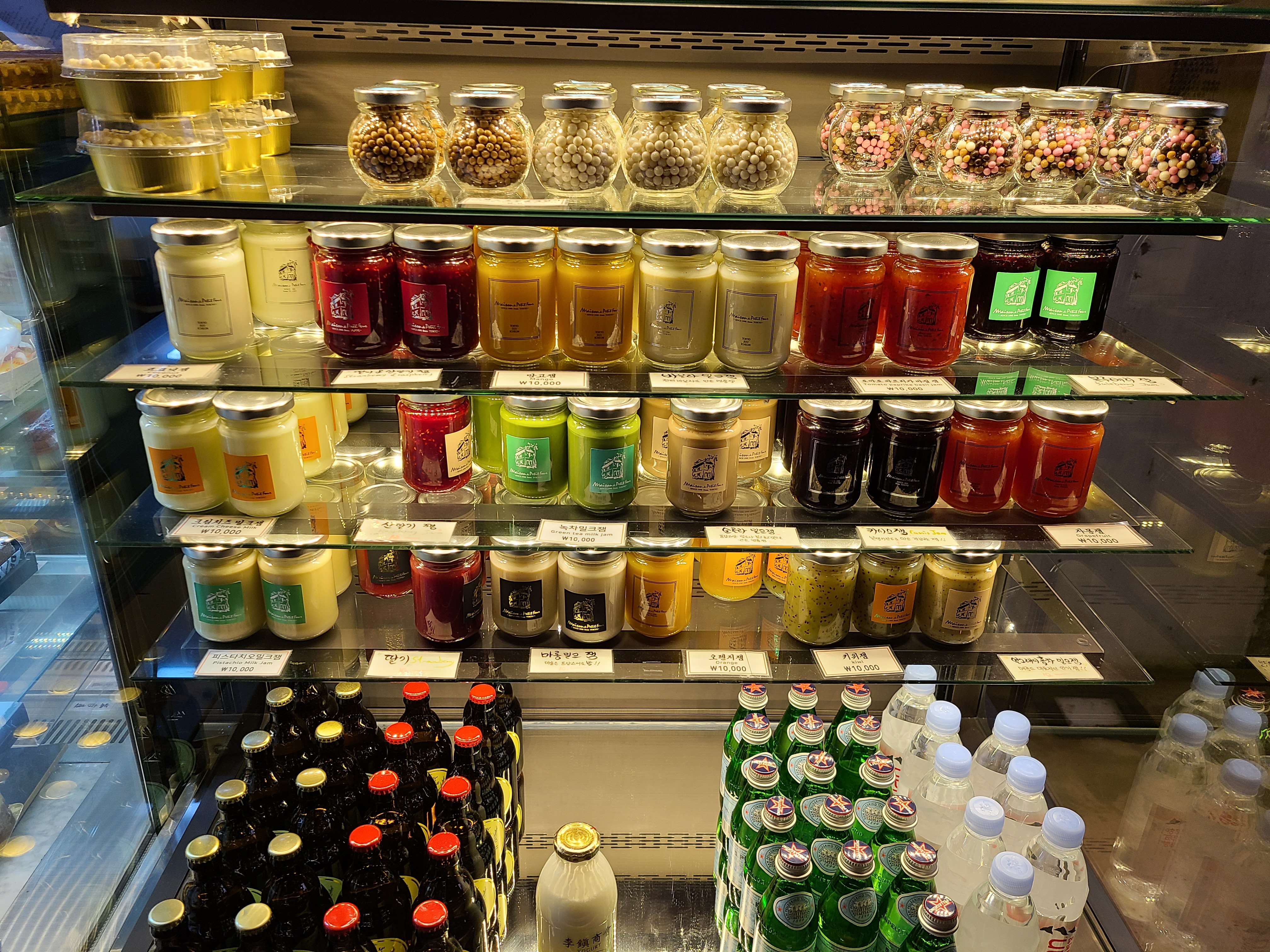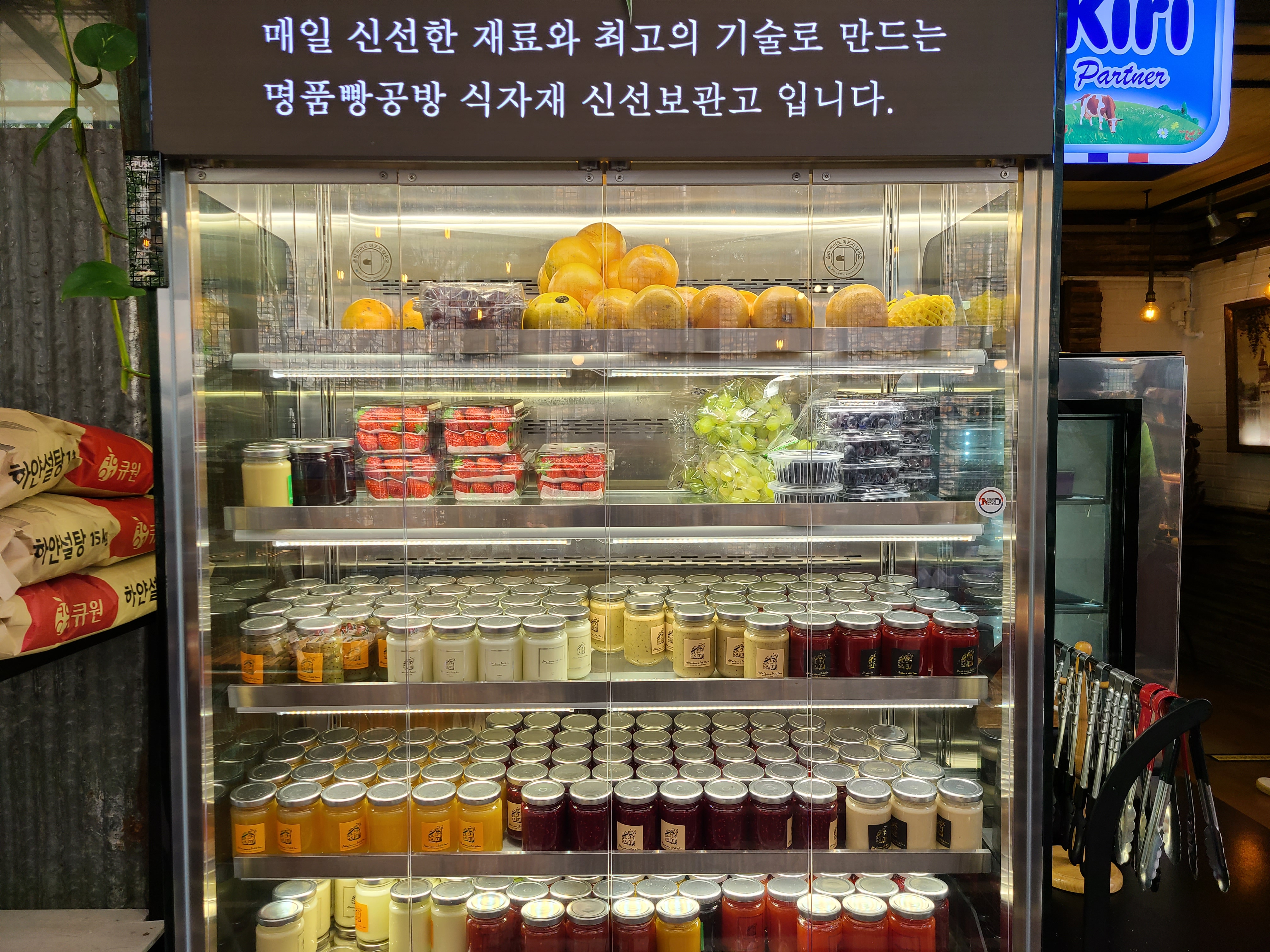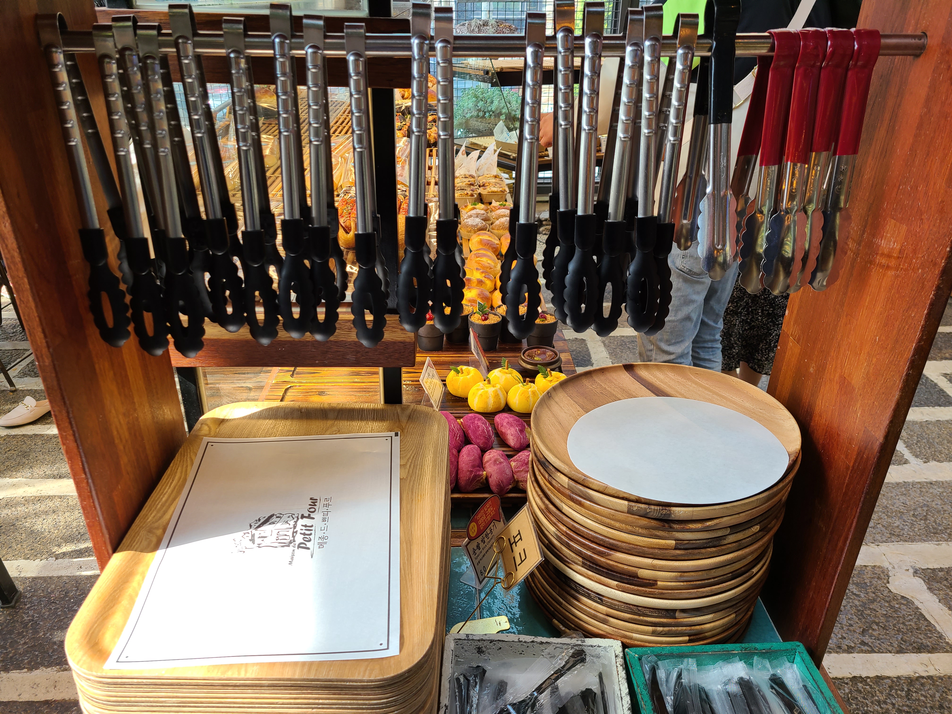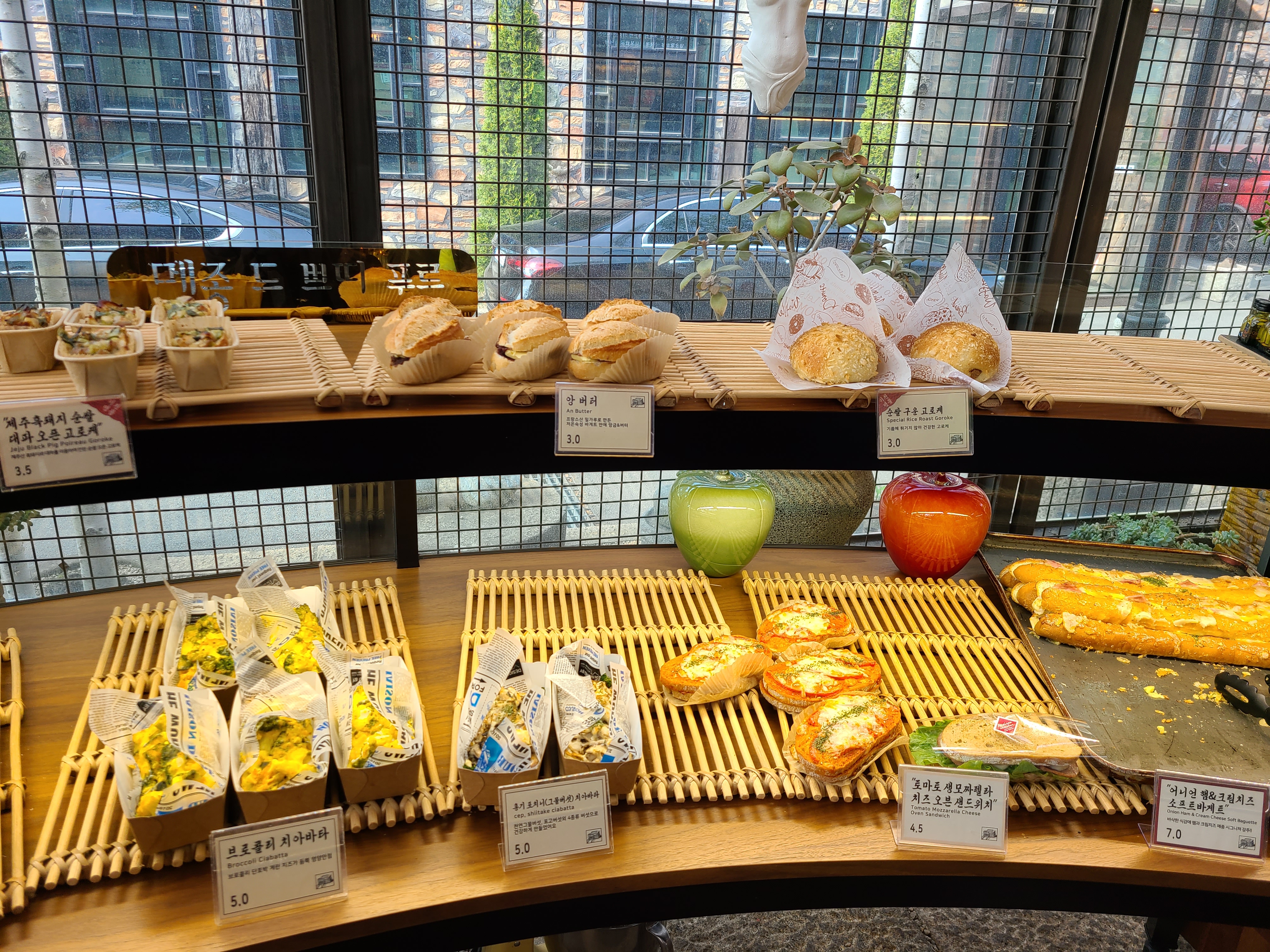 빵의 종류가 정말 다양해서 구경하는 즐거움이 있었다. 순쌀 꽃단지, 순쌀 밥 한 공기, 도자기 화분이라는 메뉴는 담겨 있는 도자기 용기를 가져갈 수 있는 점도 재미있었다. 오후 3시가 넘은 시간이었는데 주방에서 새로 만든 빵이 계속 진열되고 있는 것을 보니 회전율이 좋은 것 같았다. 이진상회 안의 베이커리는 제주도 방지 순례의 성지인 '메종 드 쁘띠 부르'가 입점하여 운영 중에 있다. 이효리 단골 빵집으로 유명하다고 한다. 밥을 먹은 지 얼마 안 되었지만 순쌀 꽃단지와 앙버터를 구매했다. 다음번에 방문한다면 밥을 먹기 전 방문해서 다양한 종류의 빵을 맛보고 싶다.