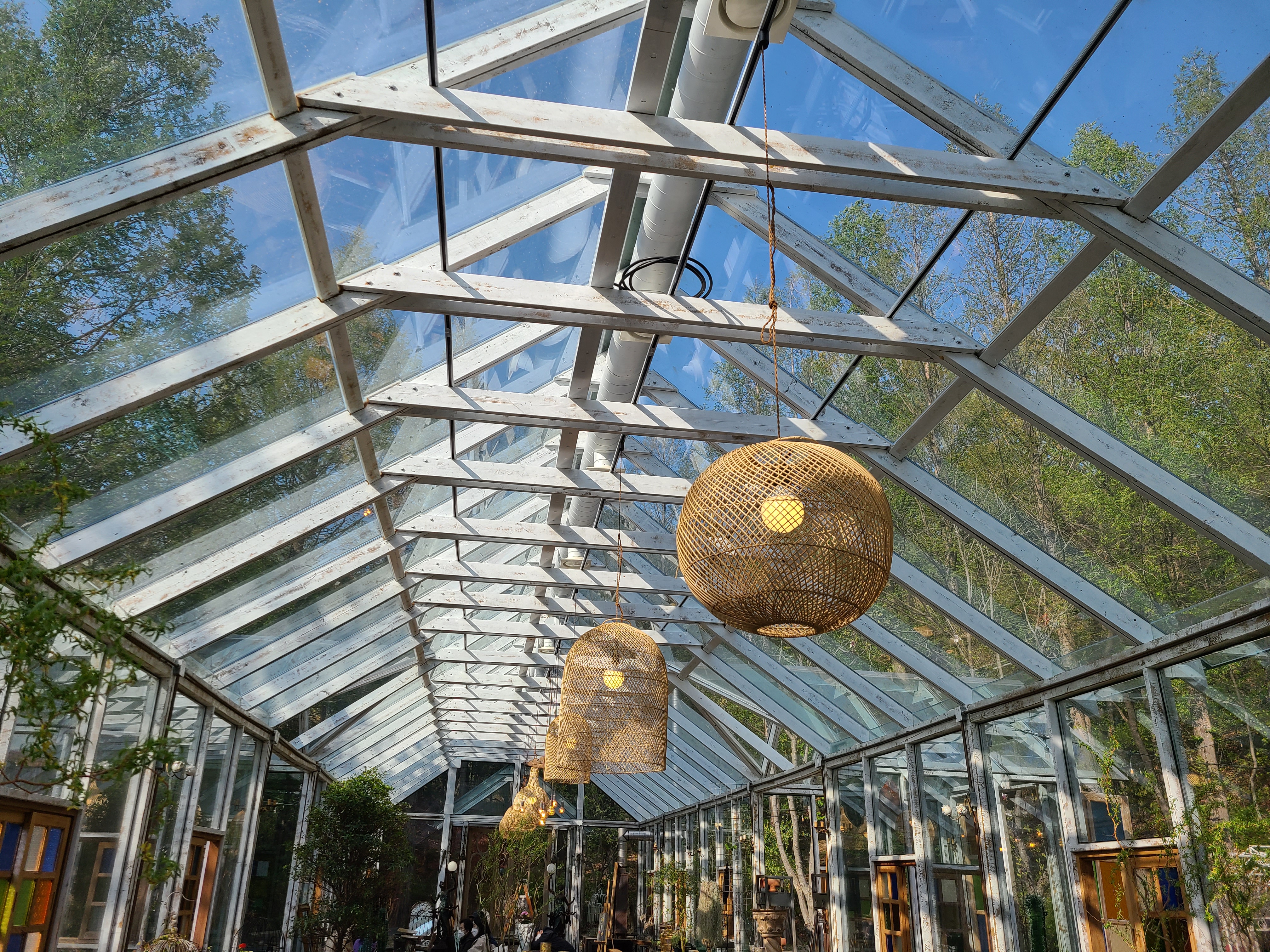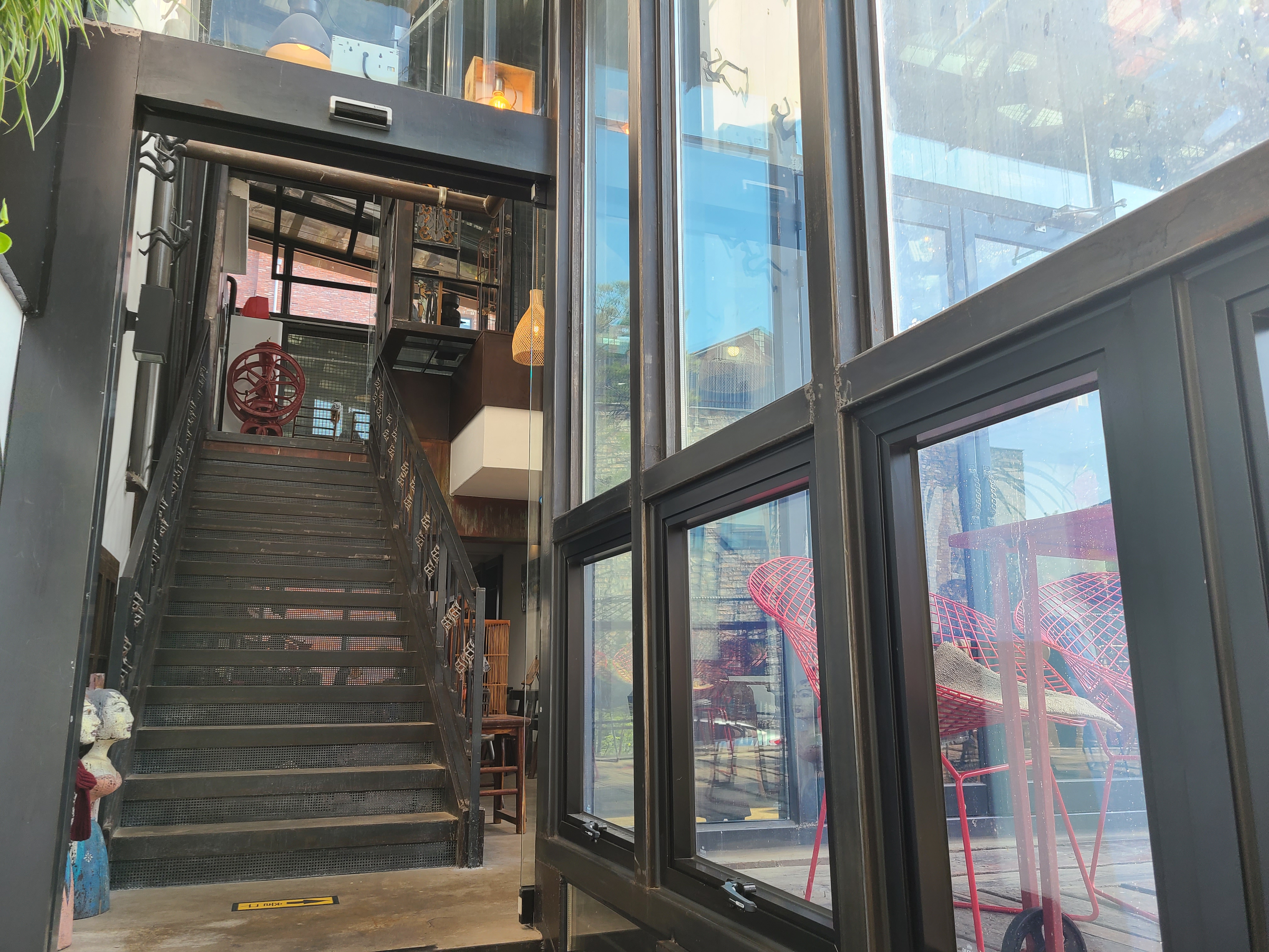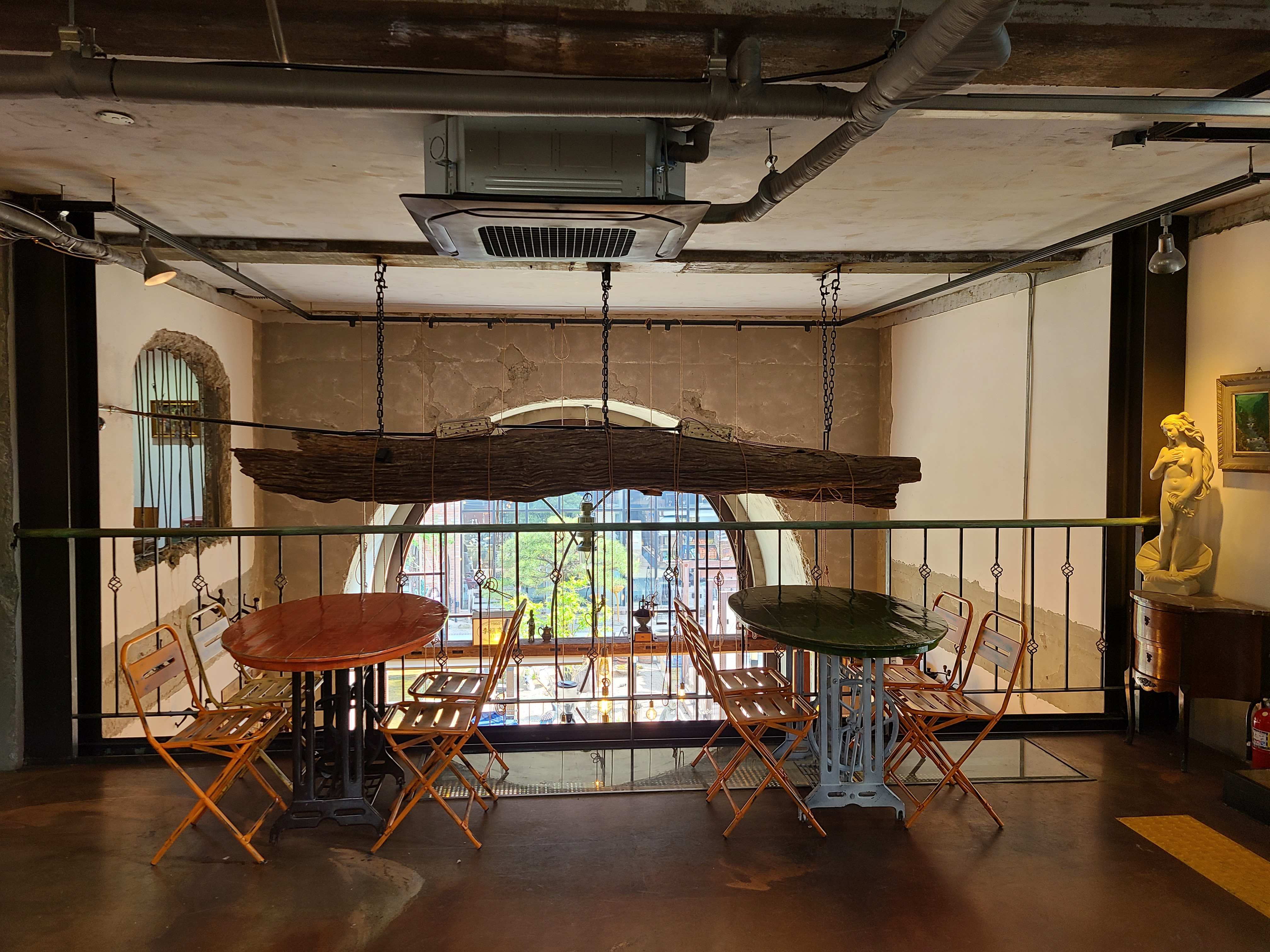 빵과 음료를 주문하기 전 우리 집 식구와 카페를 돌아보기로 했다. 온실 같은 카페 안으로 들어가니 테이블이 곳곳에 놓여있었다. 생각보다 사람이 많지 않았고, 테이블이 워낙 많아 카페 안에서 빵과 음료를 먹어 보기로 했다. 1층이 내려다보이는 곳에 자리를 잡고 빵과 음료를 주문하기 위해 1층으로 이동했다.