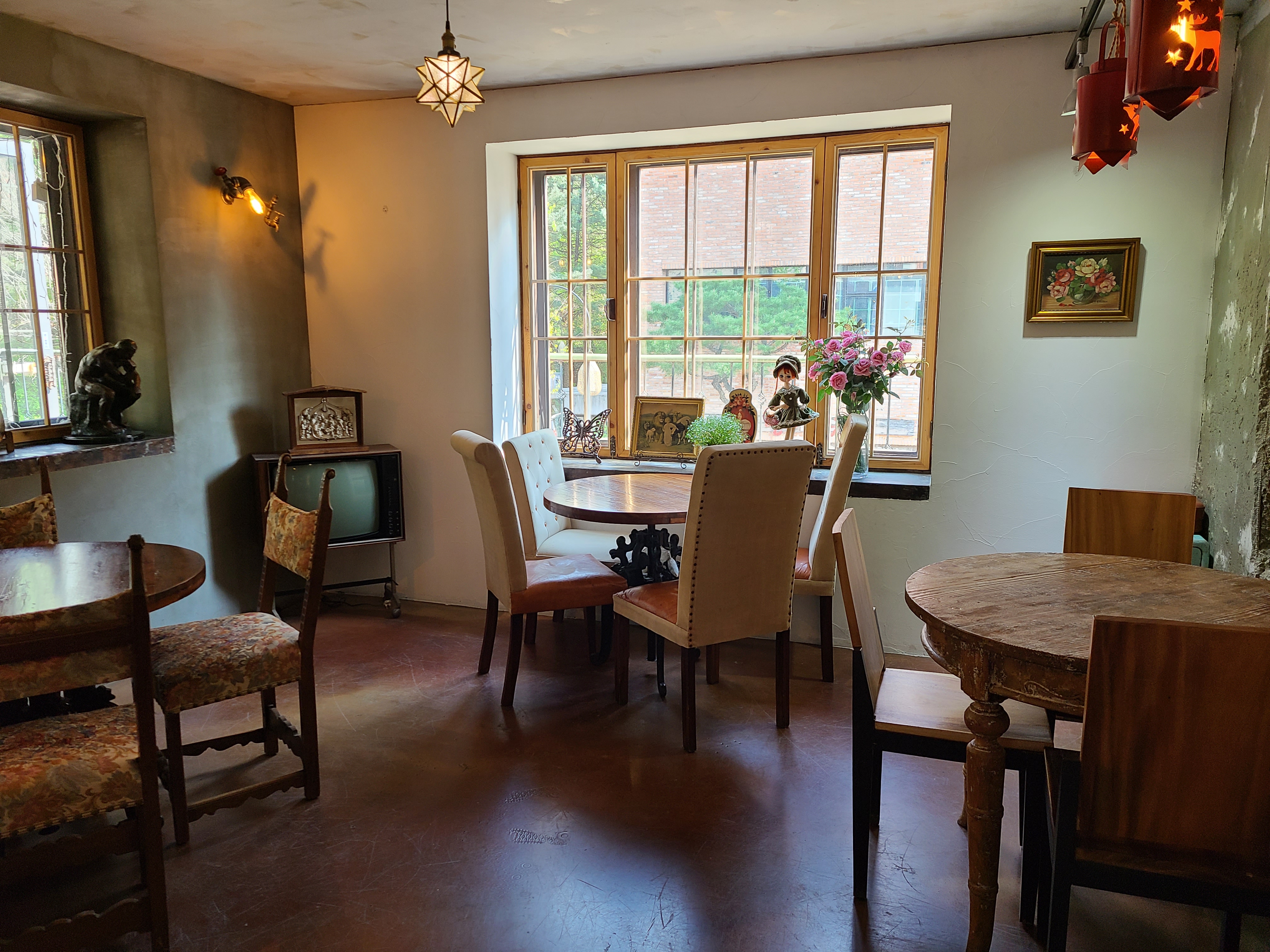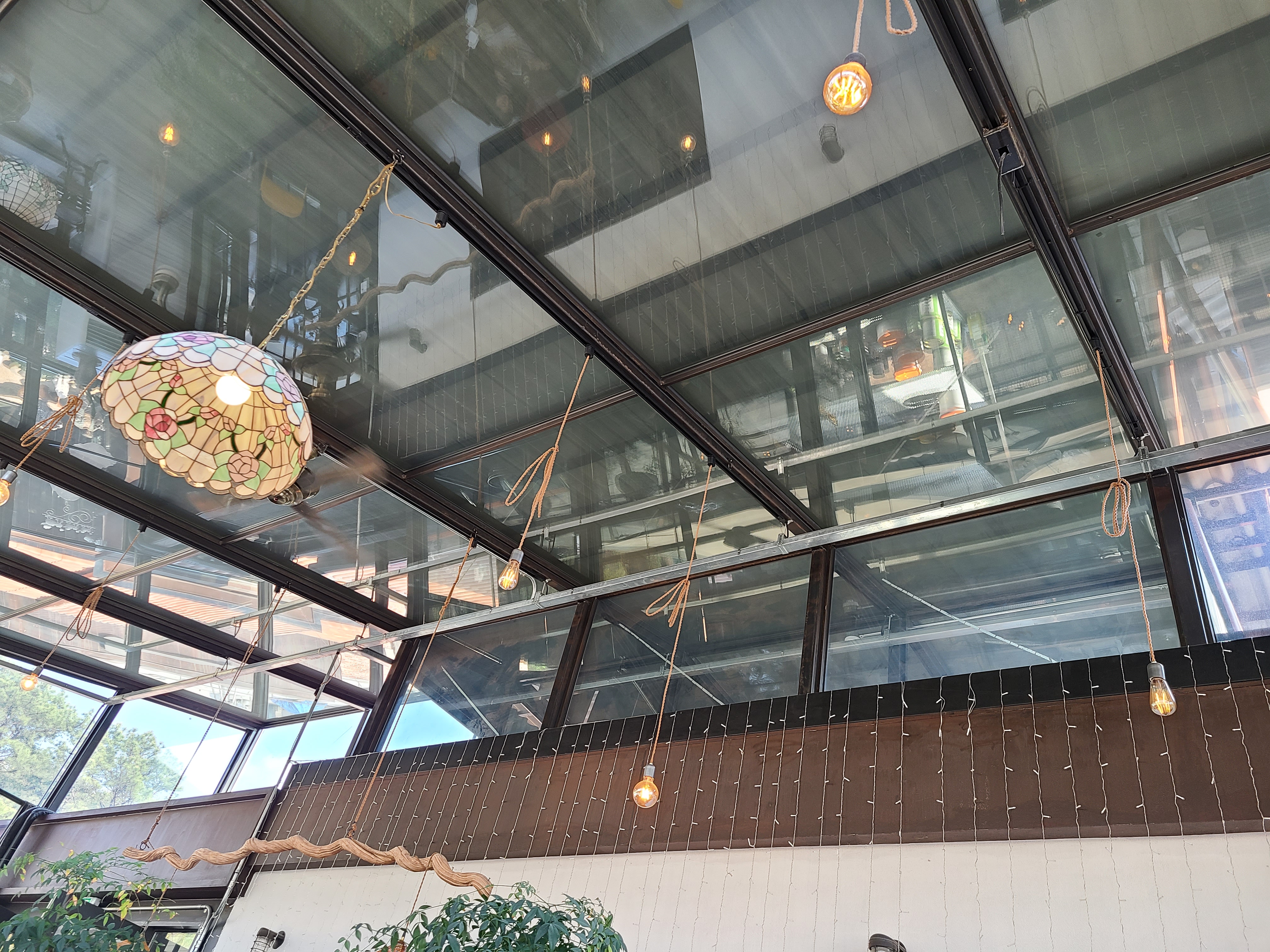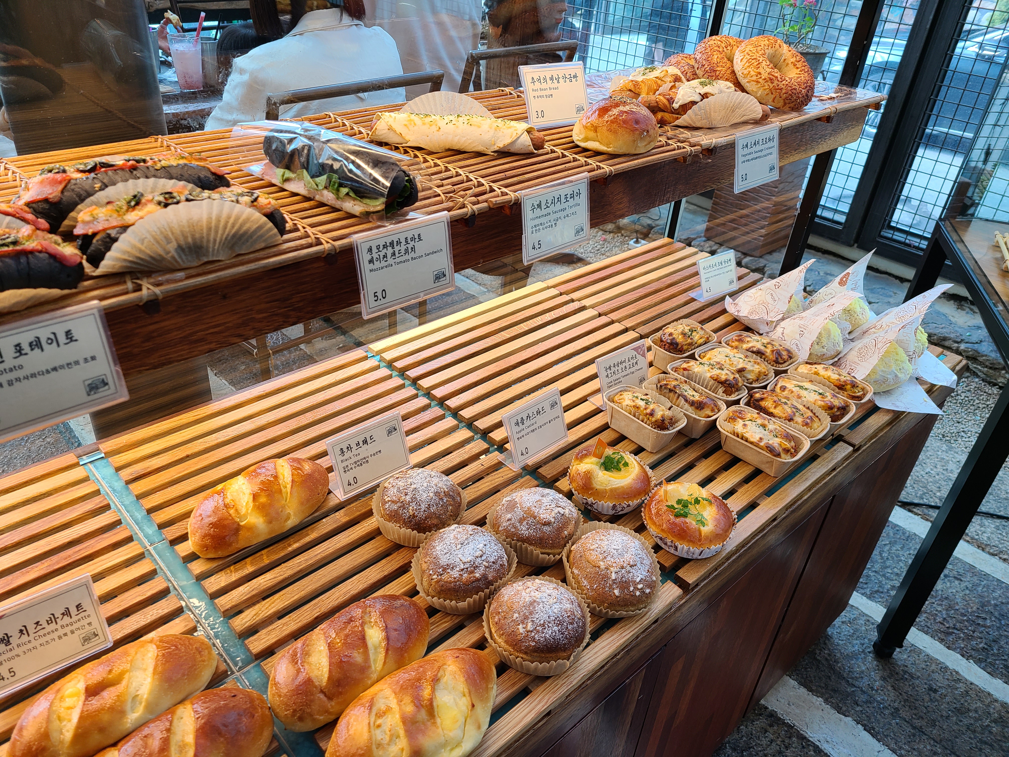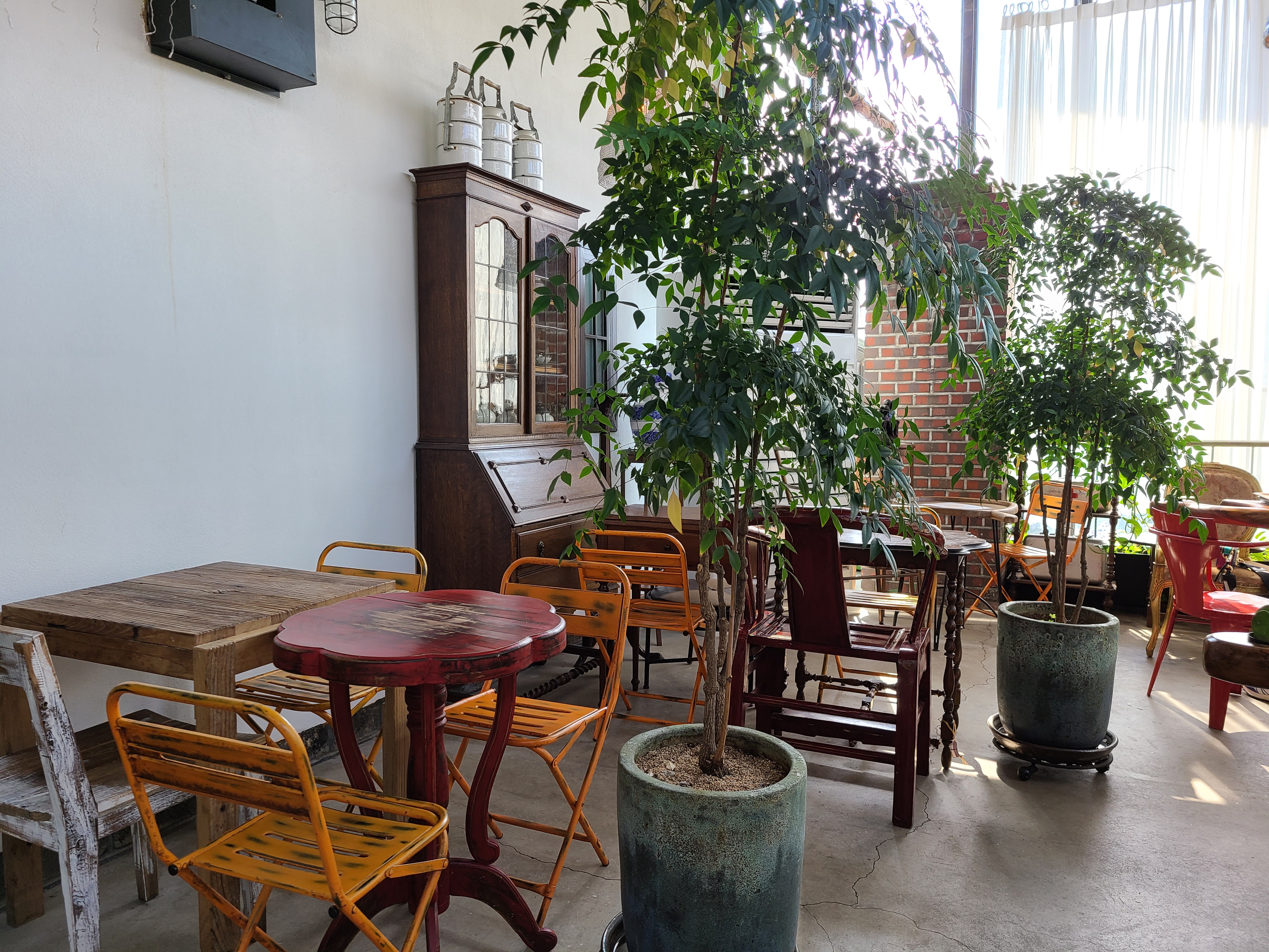 빵과 음료를 주문하기 전 우리 집 식구와 카페를 돌아보기로 했다. 온실 같은 카페 안으로 들어가니 테이블이 곳곳에 놓여있었다. 생각보다 사람이 많지 않았고, 테이블이 워낙 많아 카페 안에서 빵과 음료를 먹어 보기로 했다. 1층이 내려다보이는 곳에 자리를 잡고 빵과 음료를 주문하기 위해 1층으로 이동했다.