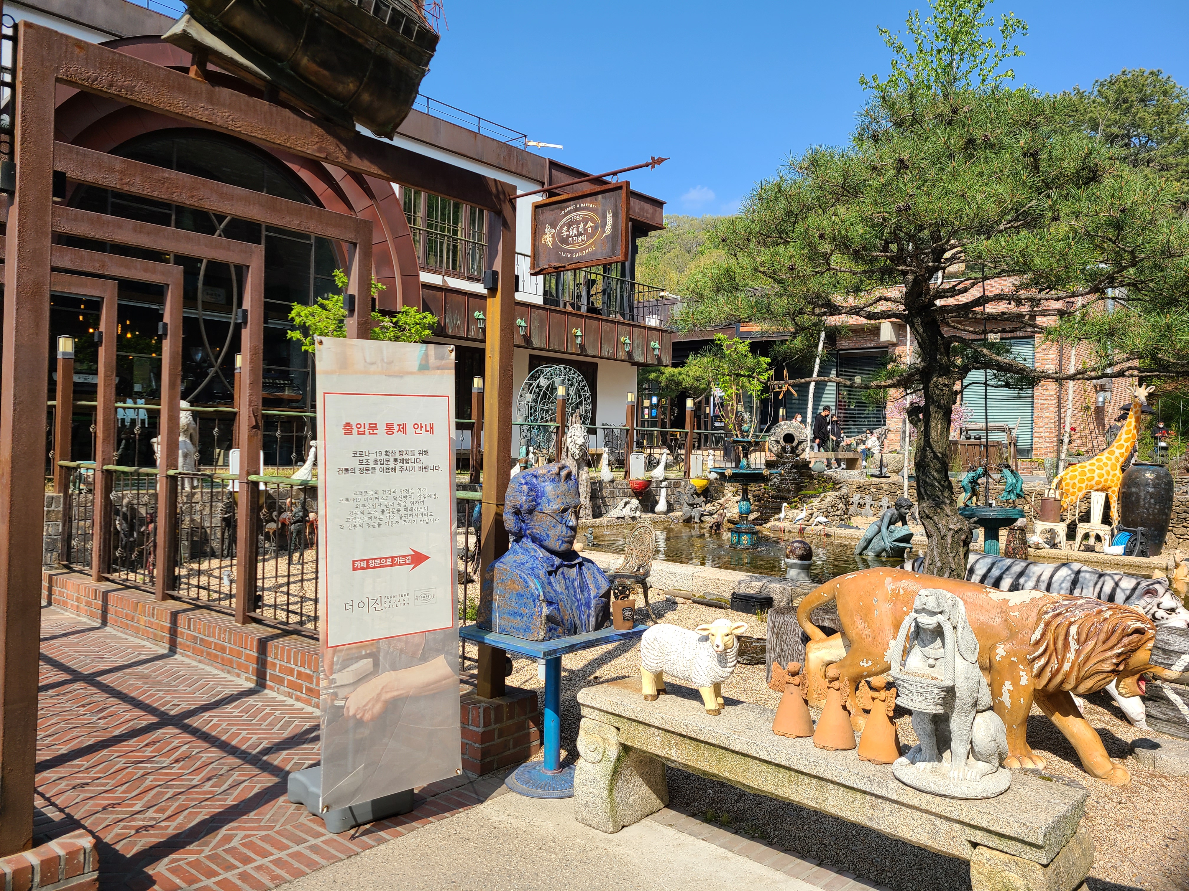 카페에 도착하니 카페 안의 주차할 공간이 없었다. 방문자가 많아지고 있어서인지 이진상회 건물 옆의 공터를 주차장으로 공사 중에 있었다. 우리 집 식구가 주차를 하는 사이 먼저 카페 안으로 들어갔다. 주차장에서 가까운 출입문은 닫혀 있었다. 코로나19 확산 방지 방지를 위해 모든 출입문을 통제하고 정문으로 출입을 관리하고 있었다. 정문으로 입장 후 발열 체크와 QR 체크인을 진행했다.