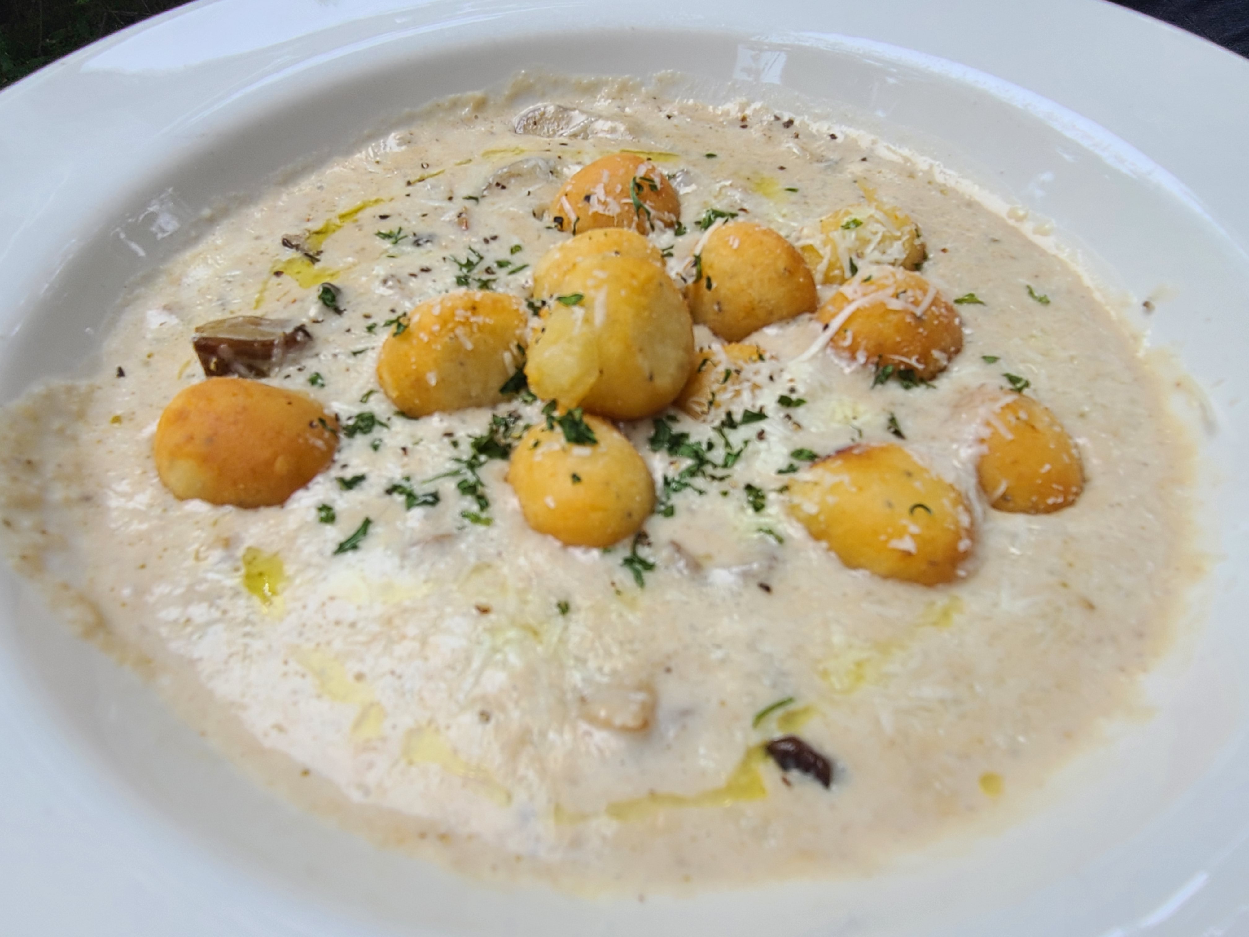 브런치 메뉴로 버섯 크림 뇨끼(19,000원)와 가지 라자냐(17,000원)를 선택하다.