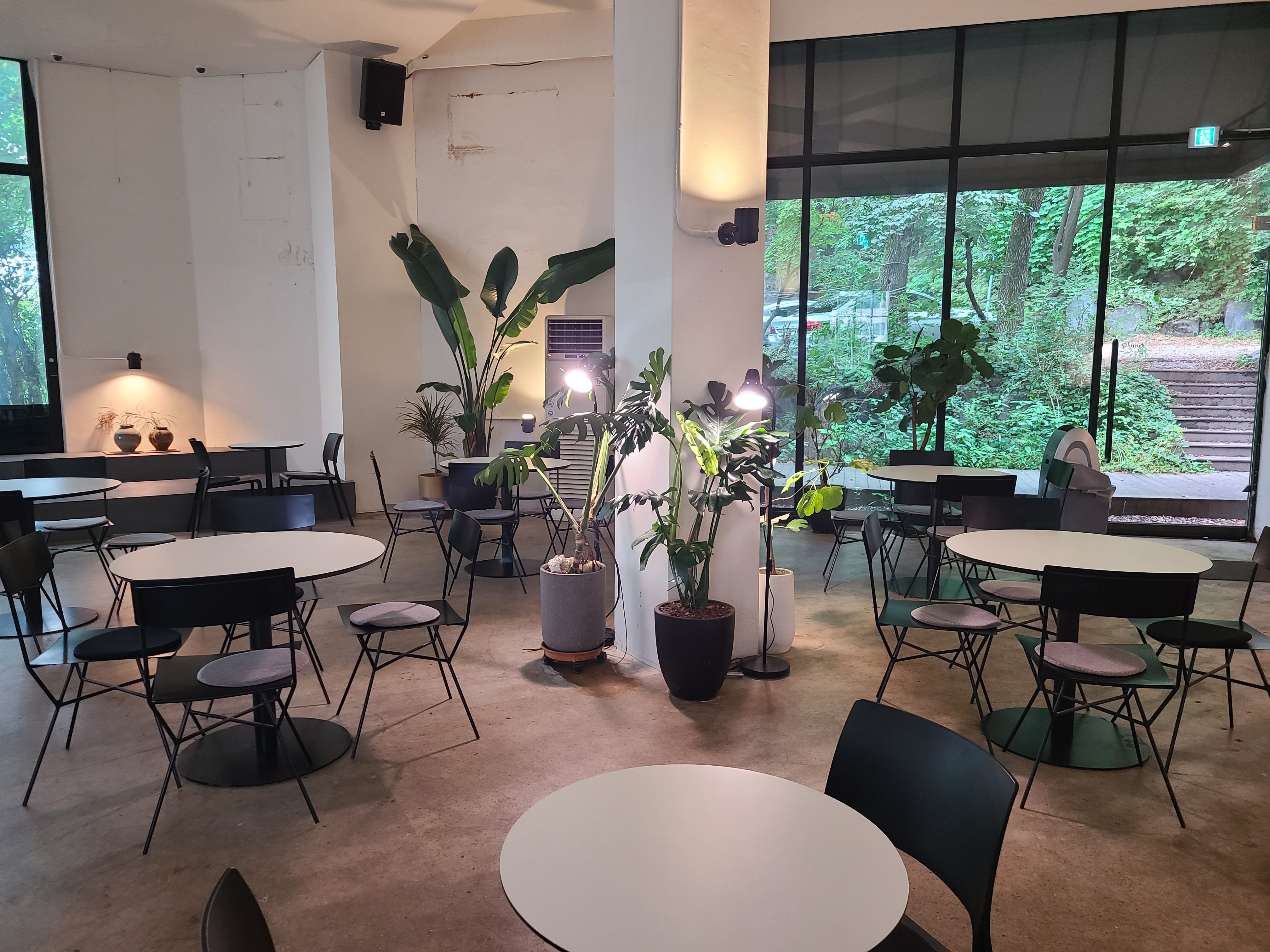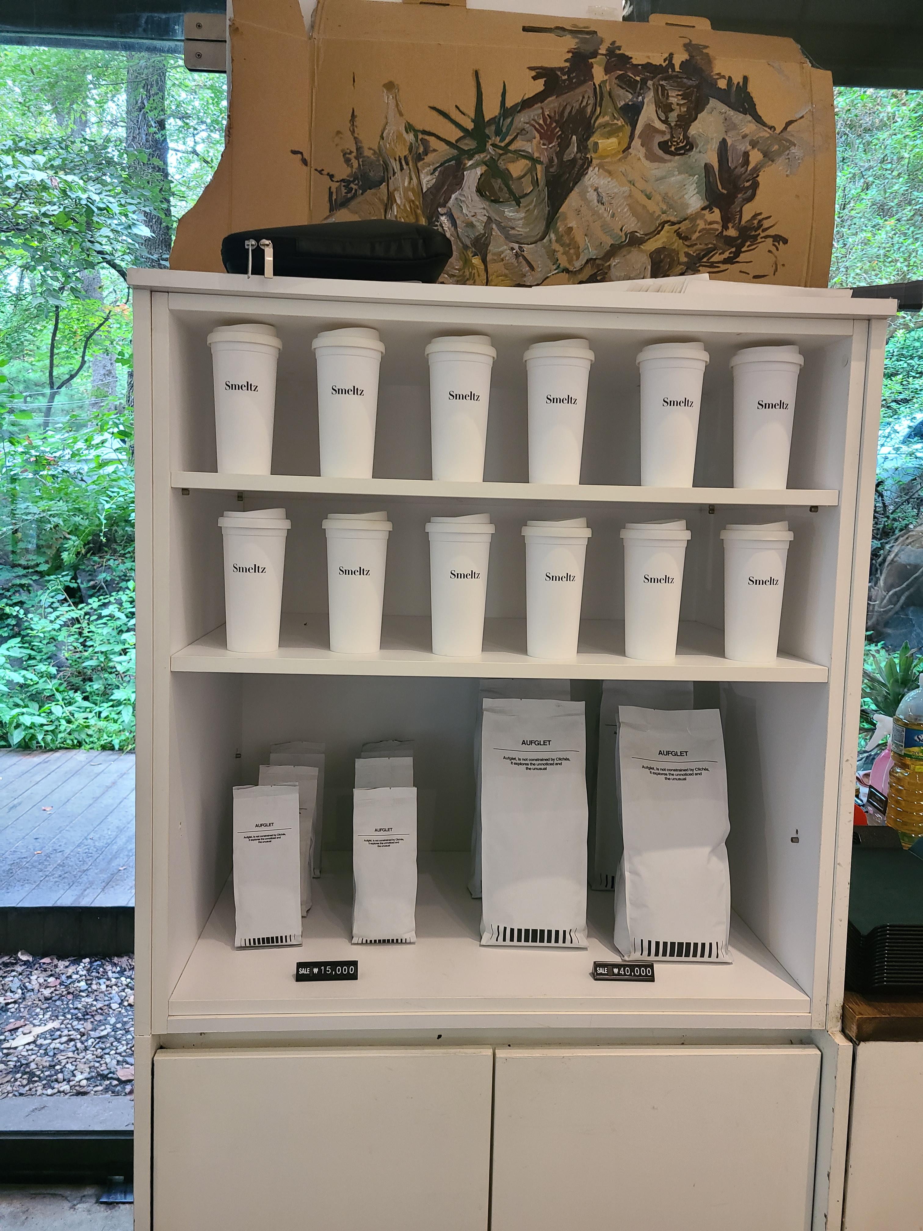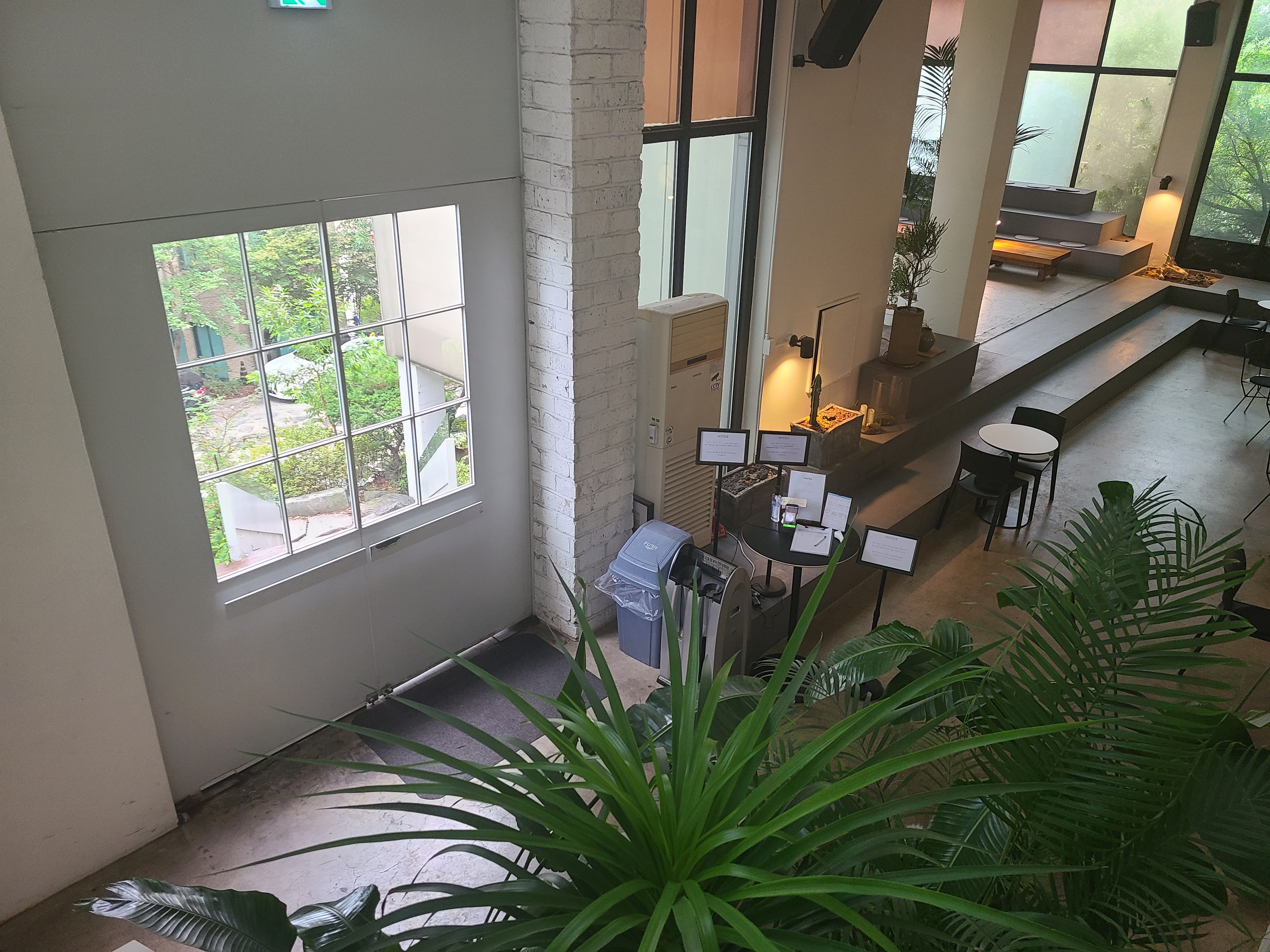카페에 도착하니 아직 문이 잠겨 있는 것 같았다. 카페 문 앞에서 어리둥절하고 있으니 문을 열어주셨다. 신상 카페가 아니라 건물이 오래된 느낌이 있었지만 스멜츠 만의 초록 초록한 분위기가 느껴져 입장부터 힐링이 되는 느낌이 들었다.
