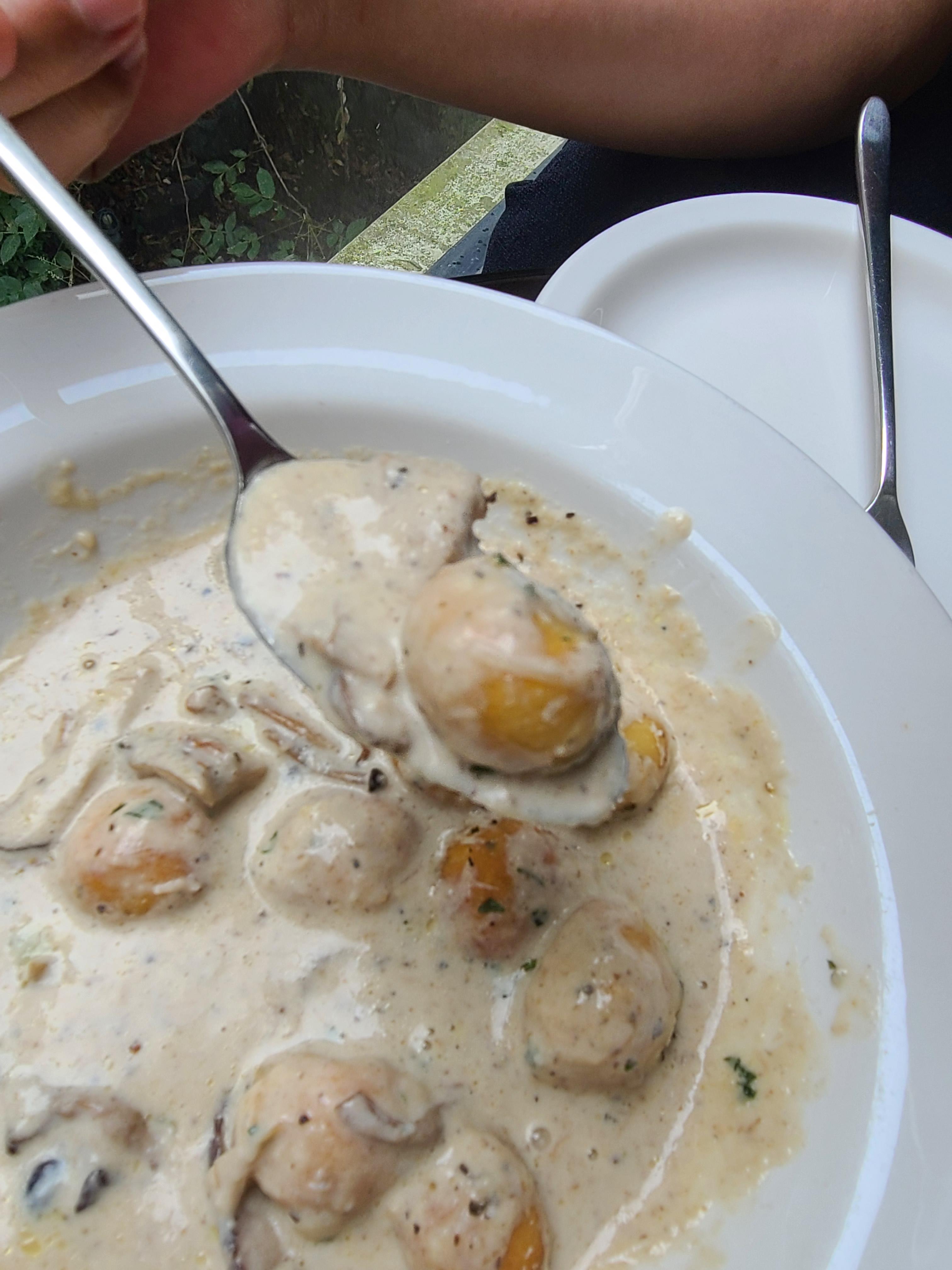 브런치 메뉴로 버섯 크림 뇨끼(19,000원)와 가지 라자냐(17,000원)를 선택하다.
