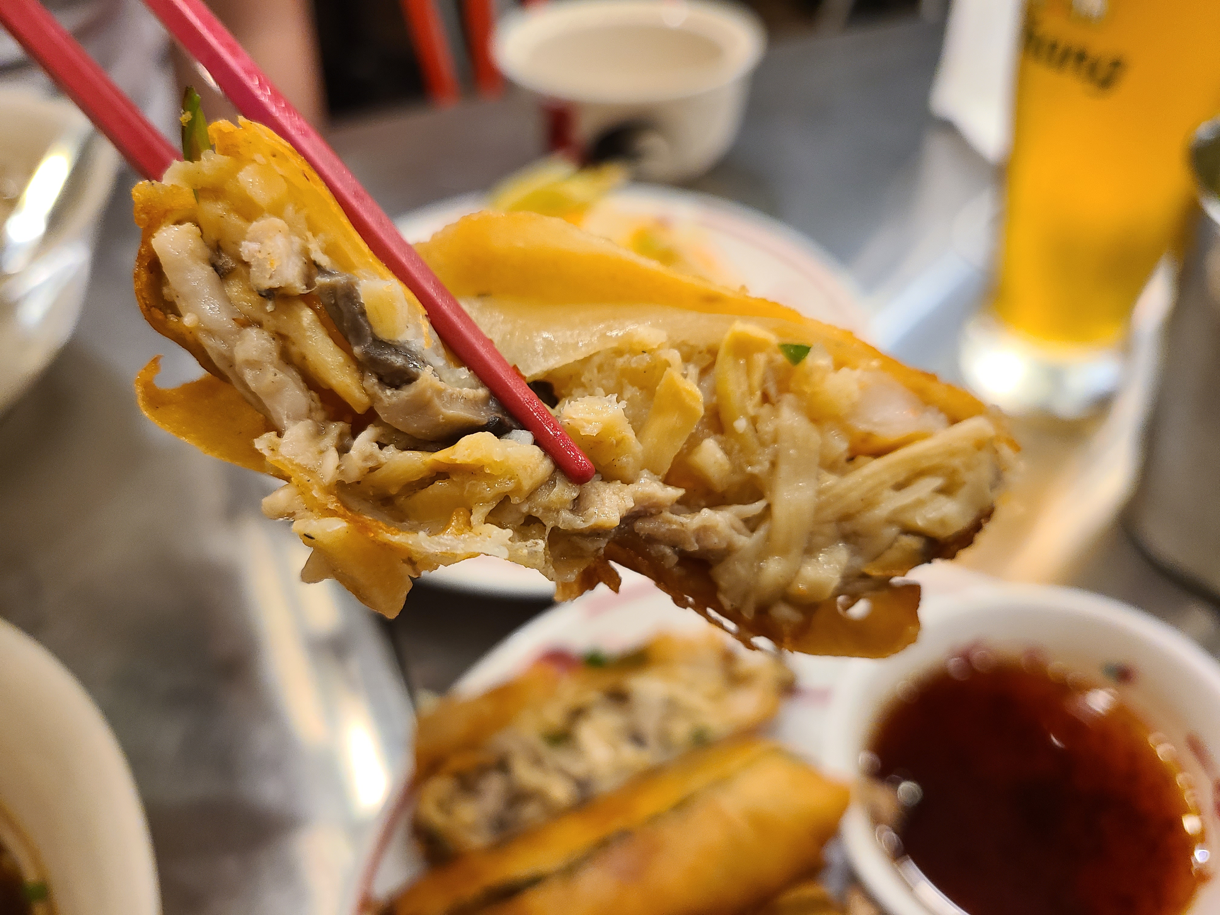 쏨탐에 이어 소이뽀삐야가 나왔다. 새우, 돼지고기, 버섯, 죽순이 바삭하게 튀겨져서 나온 이 맛이란 글을 쓰는 지금도 다시 먹고 싶다는 생각이 든다. 소이뽀삐야를 먹고 맥주를 마시니 정말 꿀맛 같았다. 우리 집 식구도 소이뽀삐야 한 입을 베어 물더니 맥주 한 모금을 들이켰다.
