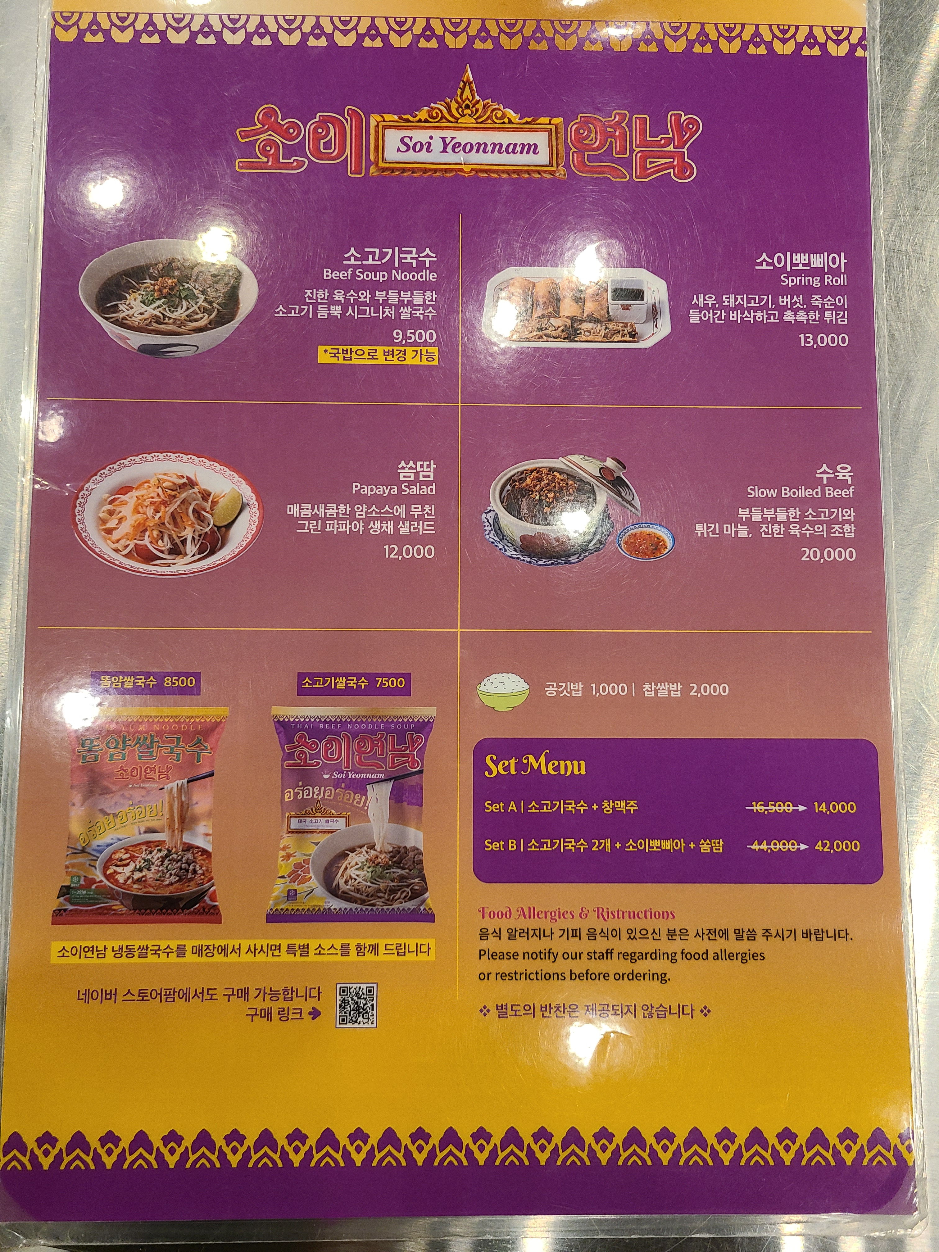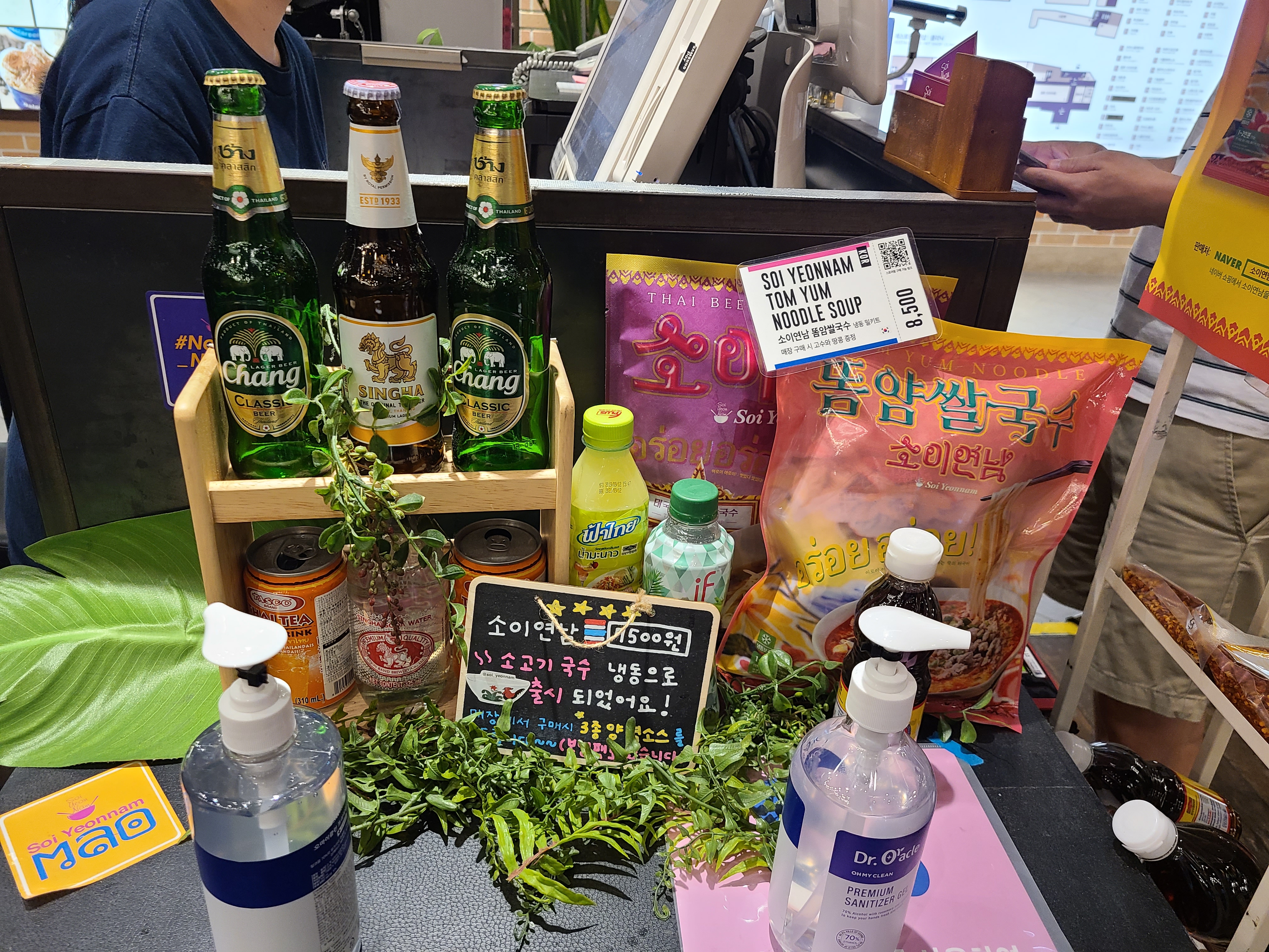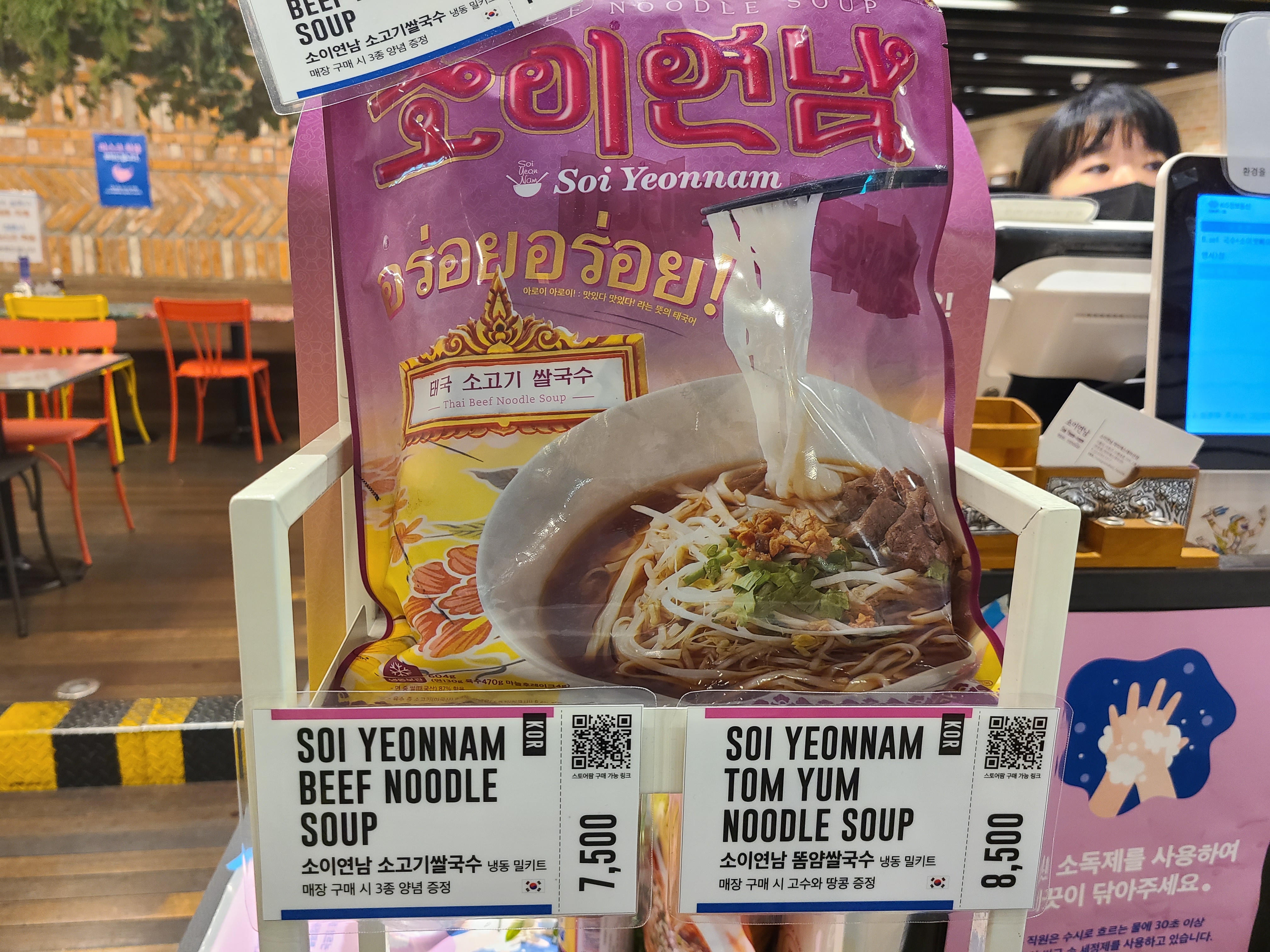 음식이 준비되기 기다리며 매장 이곳저곳을 살펴보기 시작했다. 소이연남의 맛있는 쌀국수를 집에서도 즐길 수 있게 소고기국수, 똠얌쌀국수 냉동제품과 고춧가루, 피쉬소스, 라임소스와 같은 향신료도 구매할 수 있게 준비되어 있었다. 네이버 쇼핑에서도 구매할 수 있다니 한 번쯤 주문해 봐야겠다는 생각이 들었다.