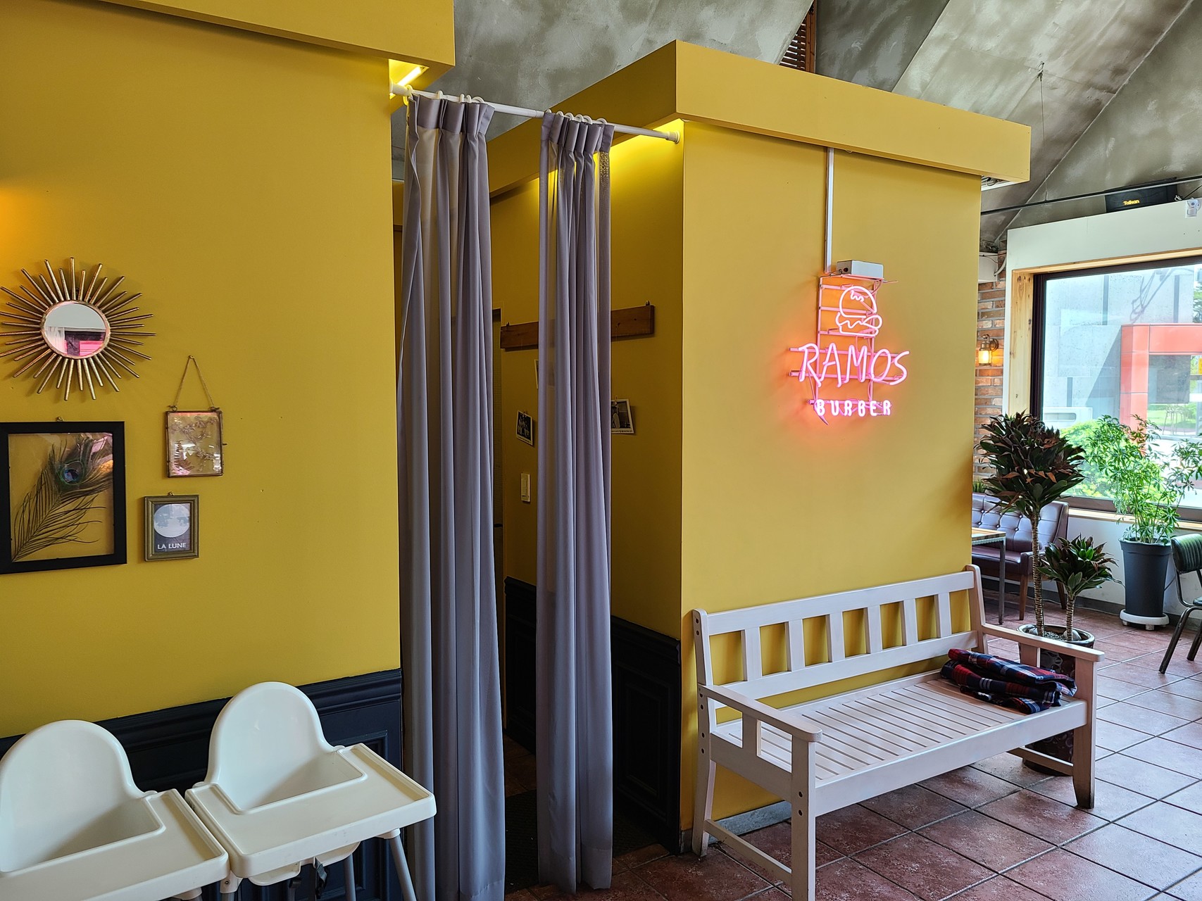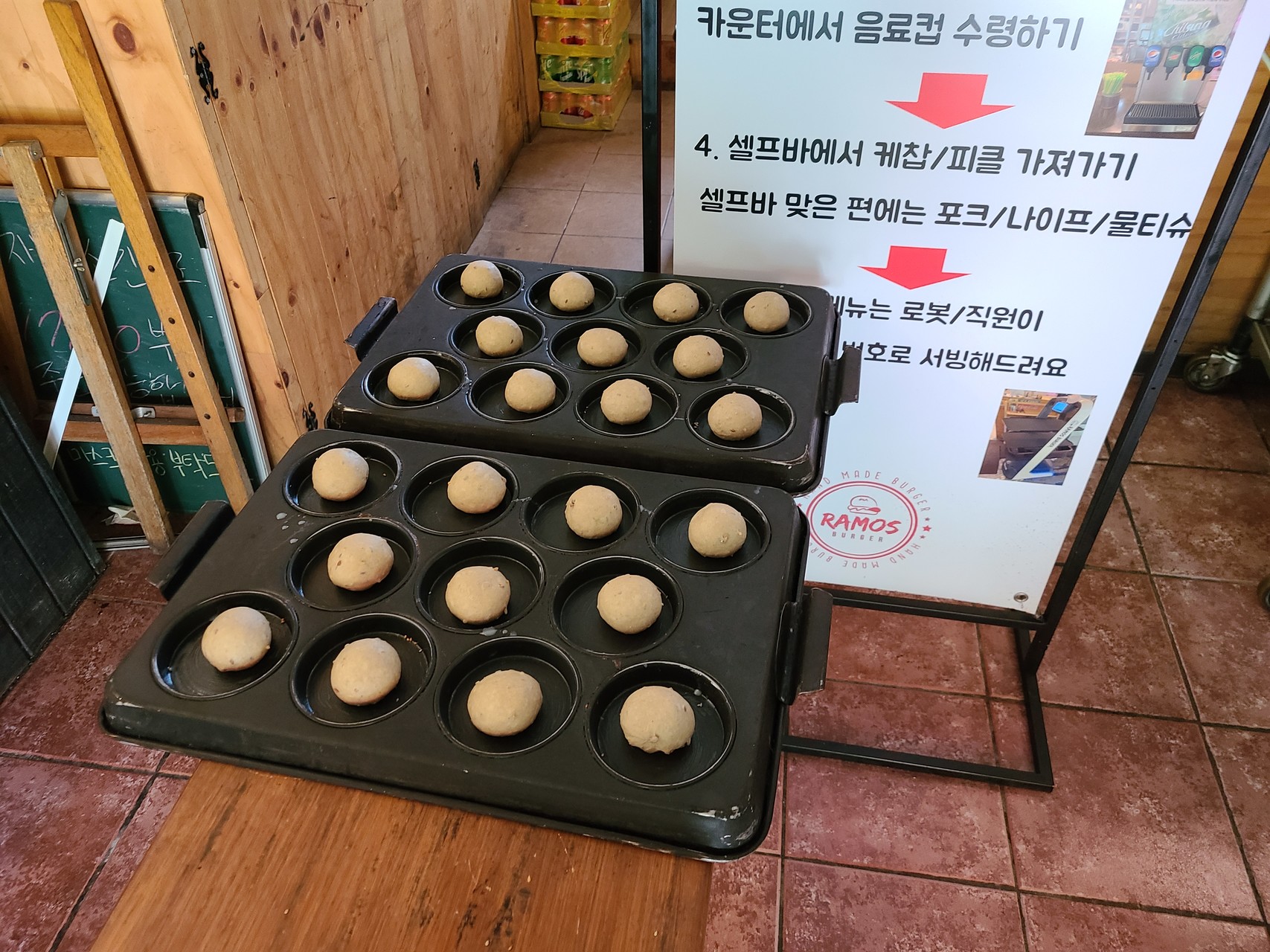 라모스버거는 춘천에서 3대째 운영되고 있는 수제버거집이라고 한다. 운영한지가 50년이 넘었다니 그 맛이 더욱 기대되었다. 외관은 미국 외곽에 있는 음식점 같았다. 하루에 두 번 직접 구운 빵을 버거 번으로 사용한다는 이야기를 듣고 갔는데, 입구에 들어가자 버거 번을 만들고 있는 모습이 보였다.