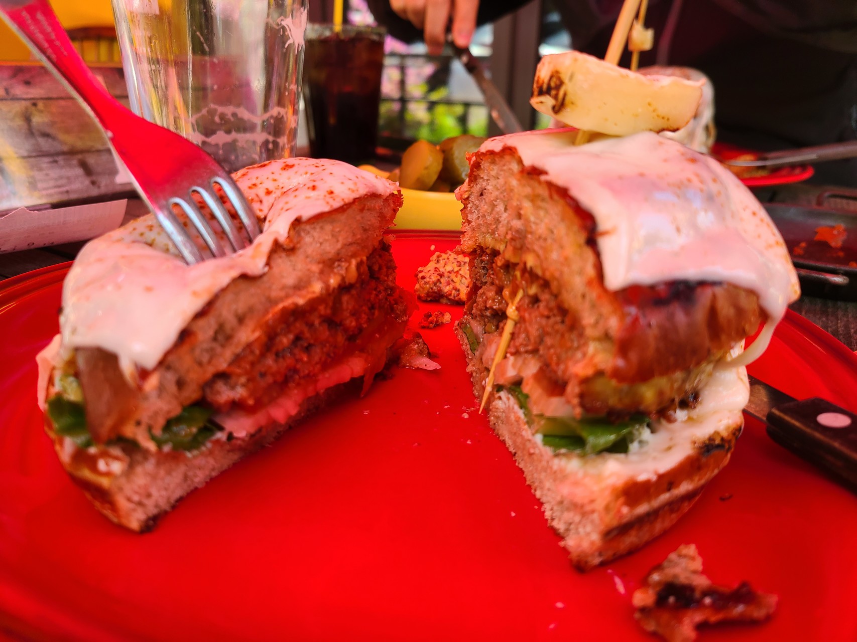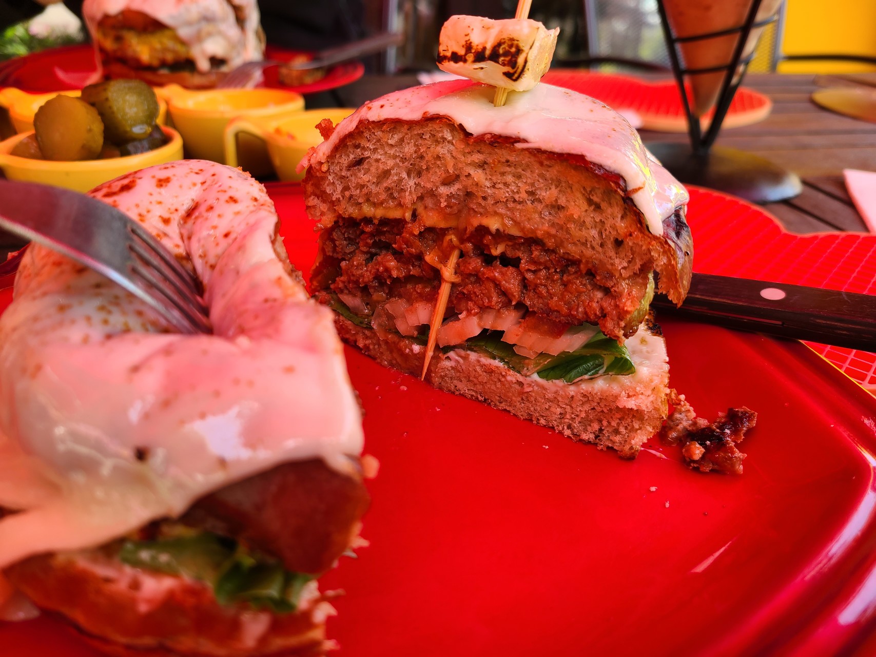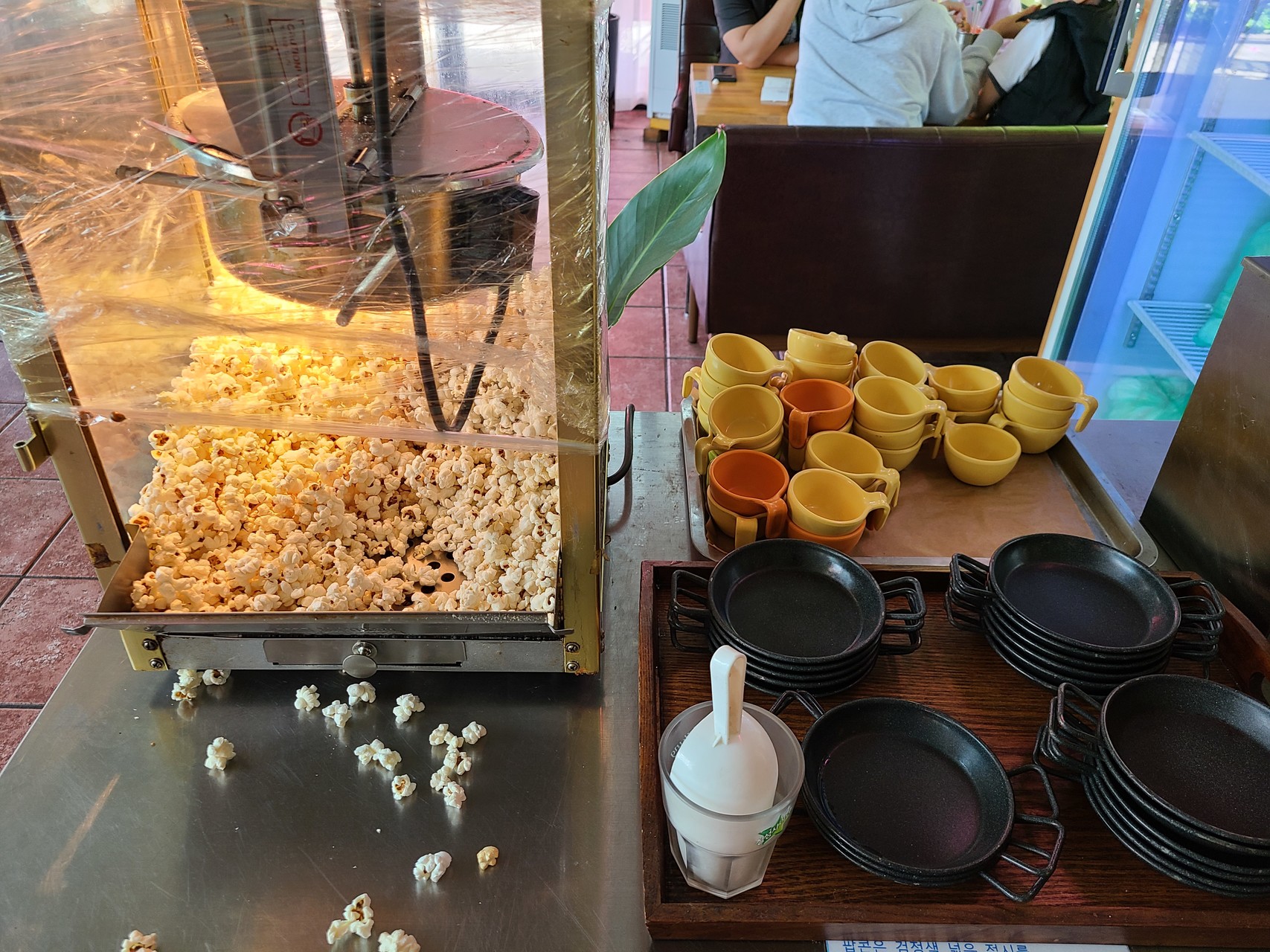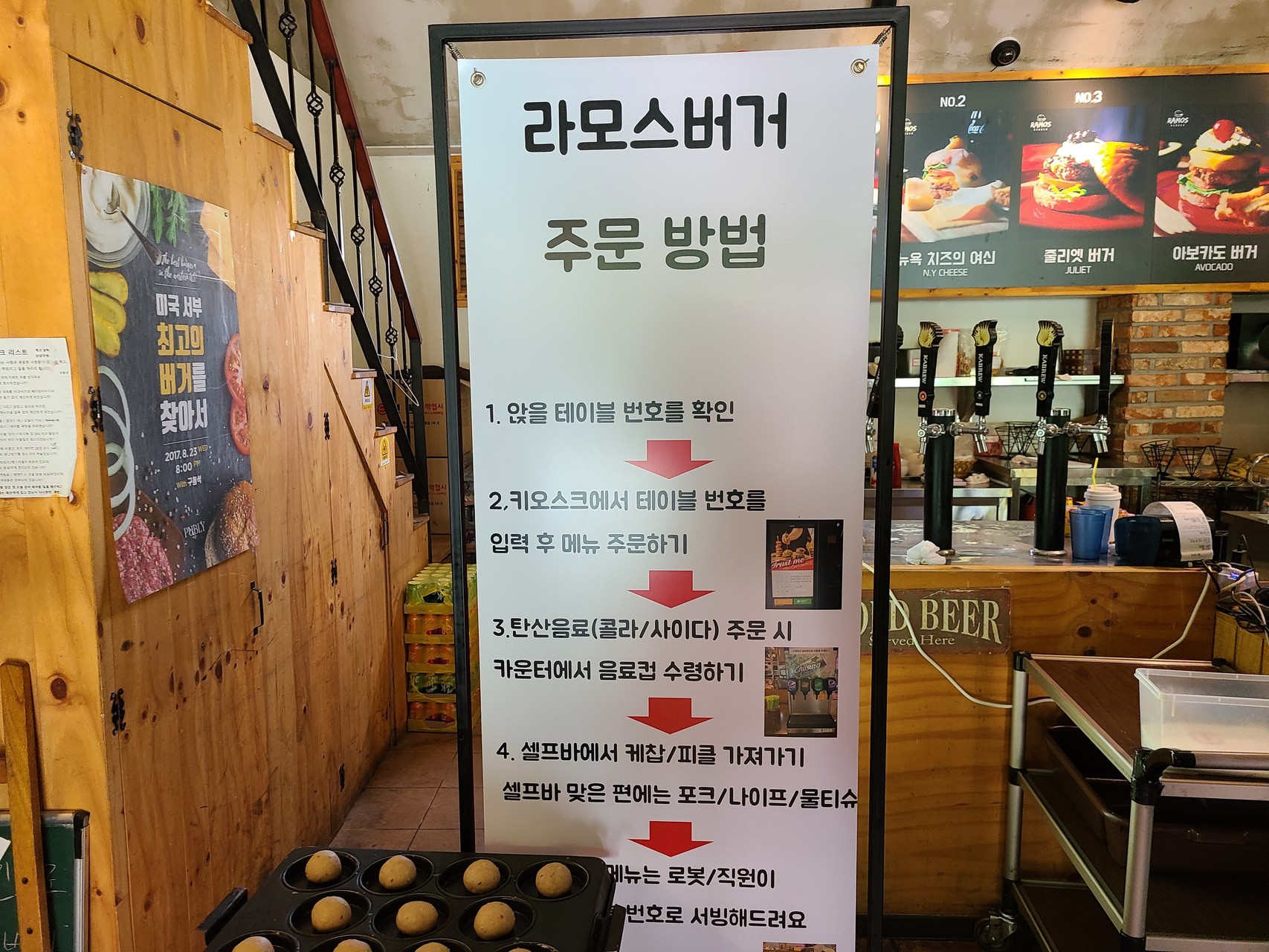 셀프바에는 팝콘, 피클, 할라피뇨, 마요네즈 소스, 토마토소스가 비치되어 있었다. 버거가 나오기 전 팝콘과 피클, 할라피뇨를 가져다 테이블 위에 세팅했다.