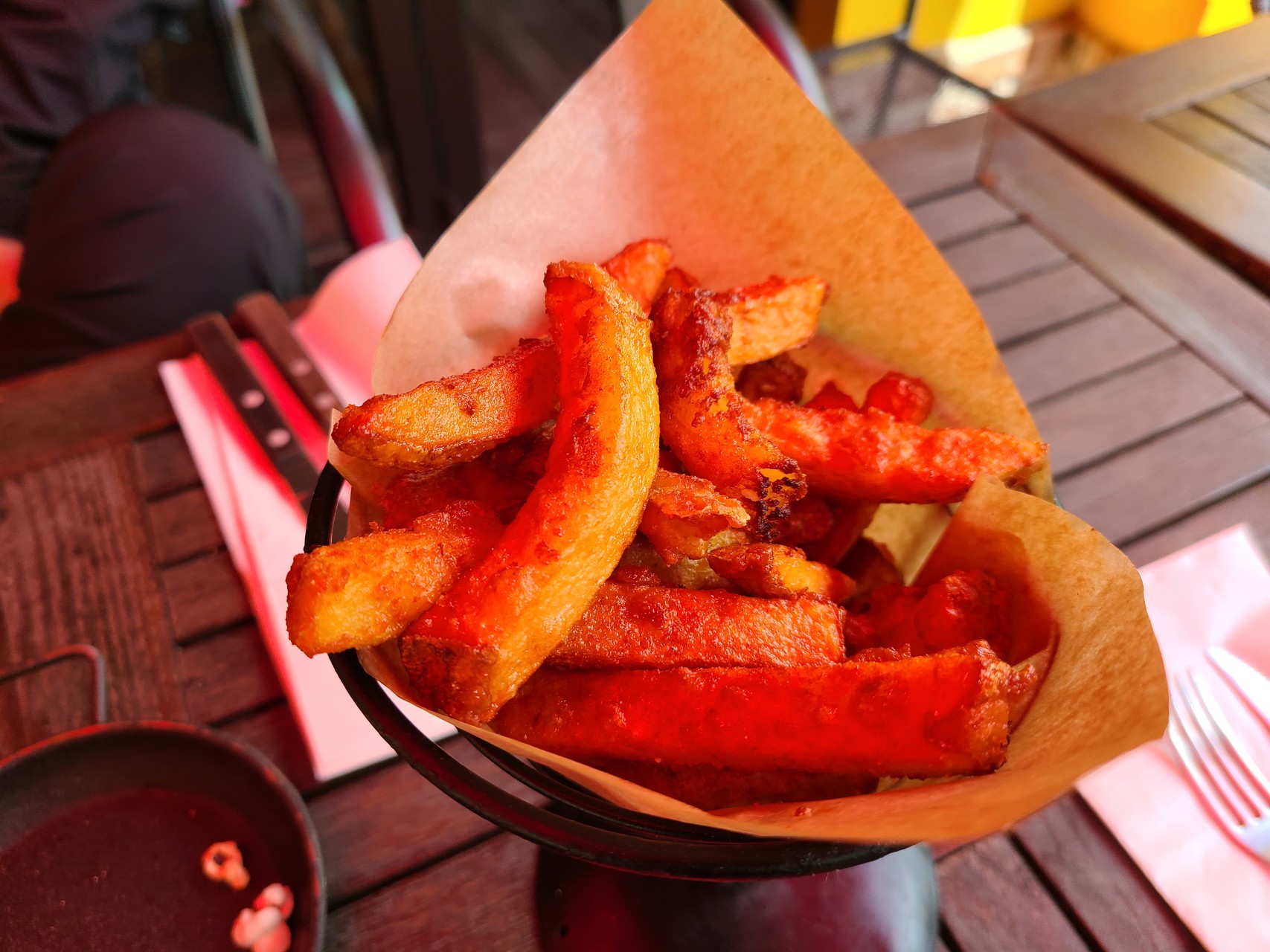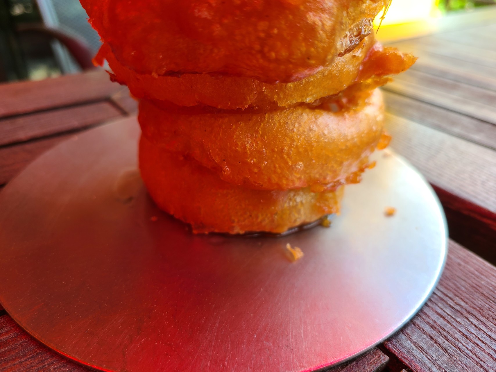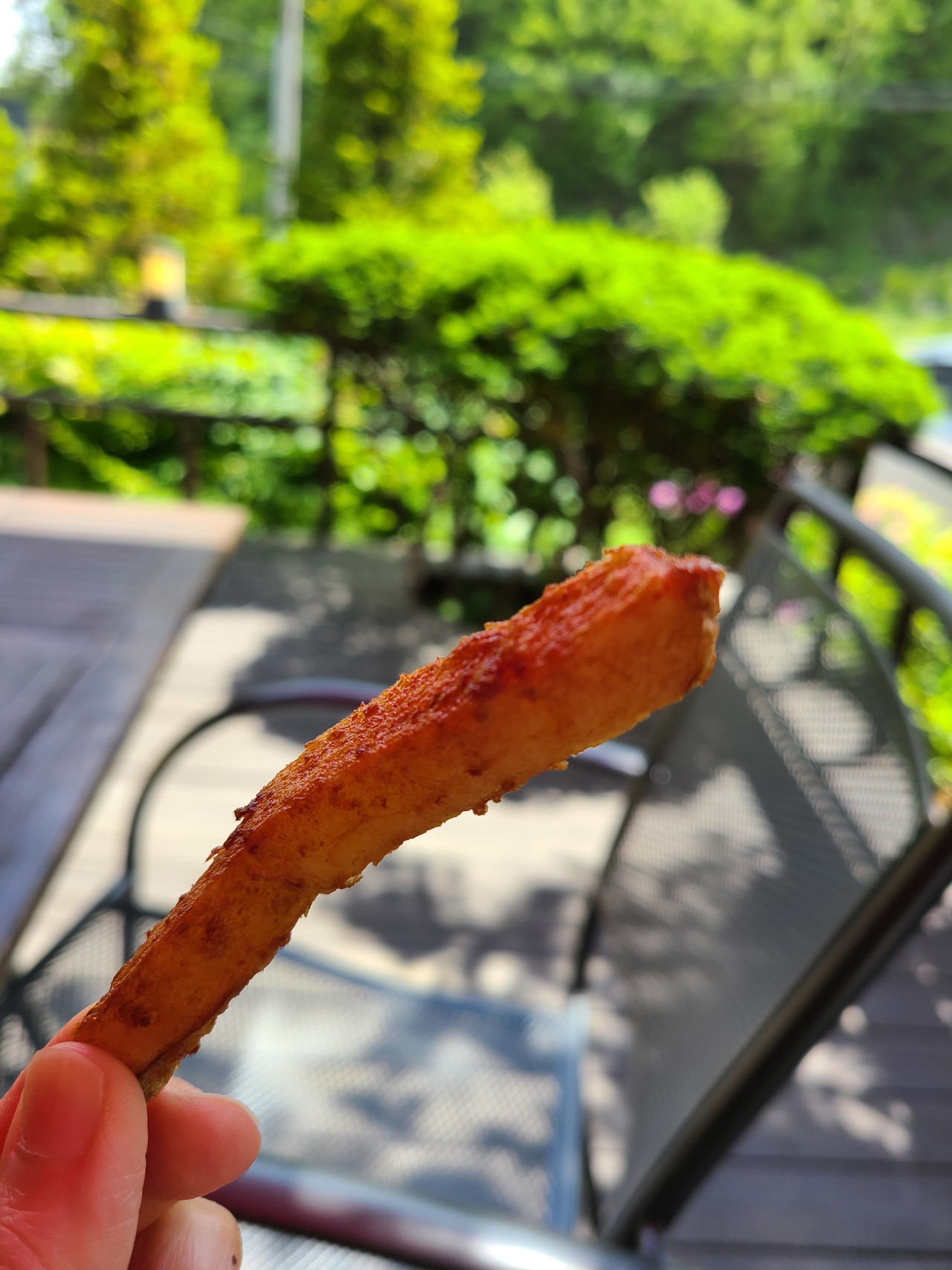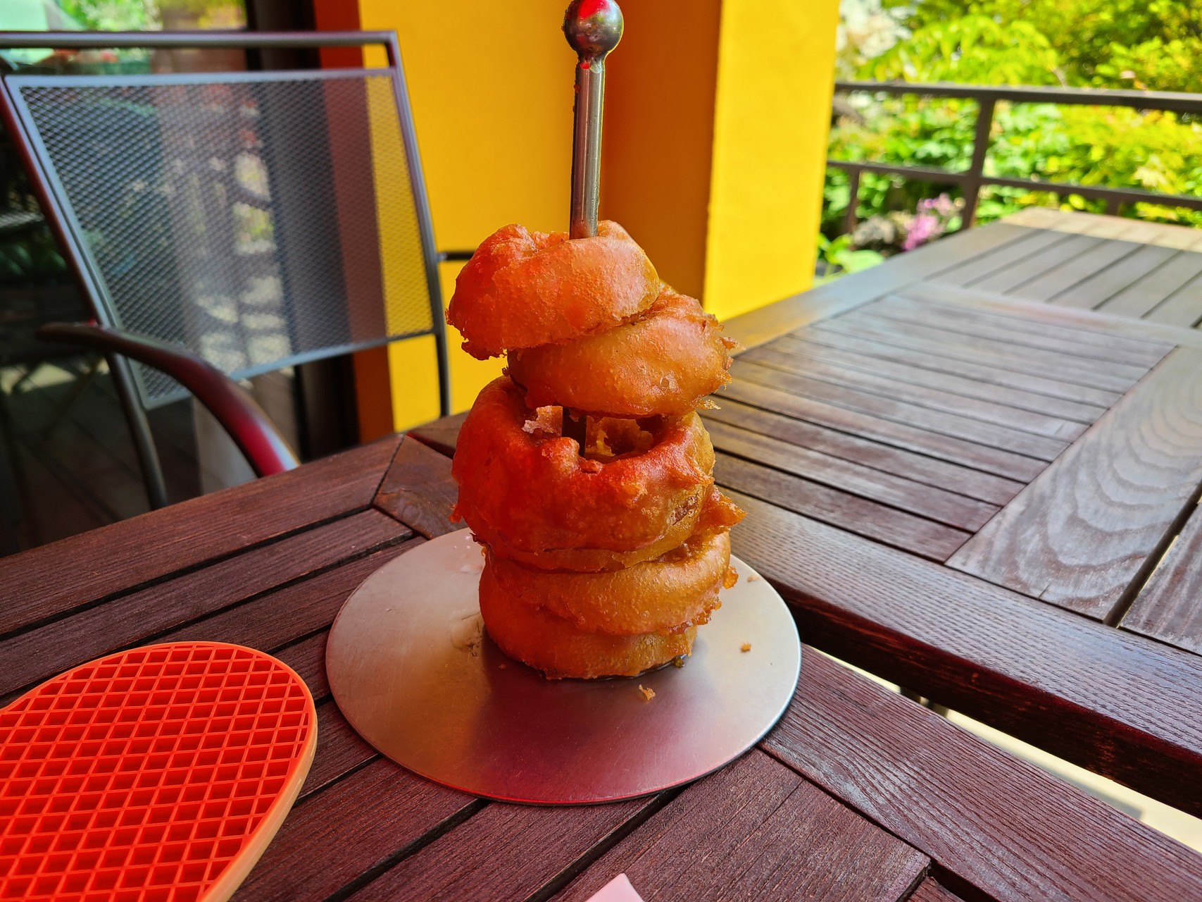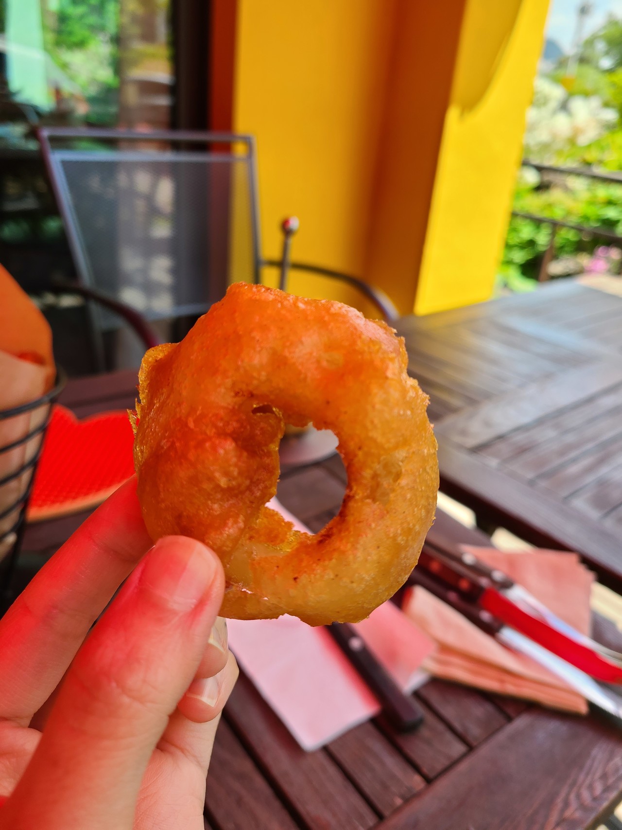 맥주를 한 모금 마시고 있으니 감자튀김, 어니언링 순으로 음식이 나왔다. 감자튀김도 맛있었지만 마요네즈를 듬뿍 찍어 먹는 어니언링이란. 이 집 어니언링 맛집이었다.