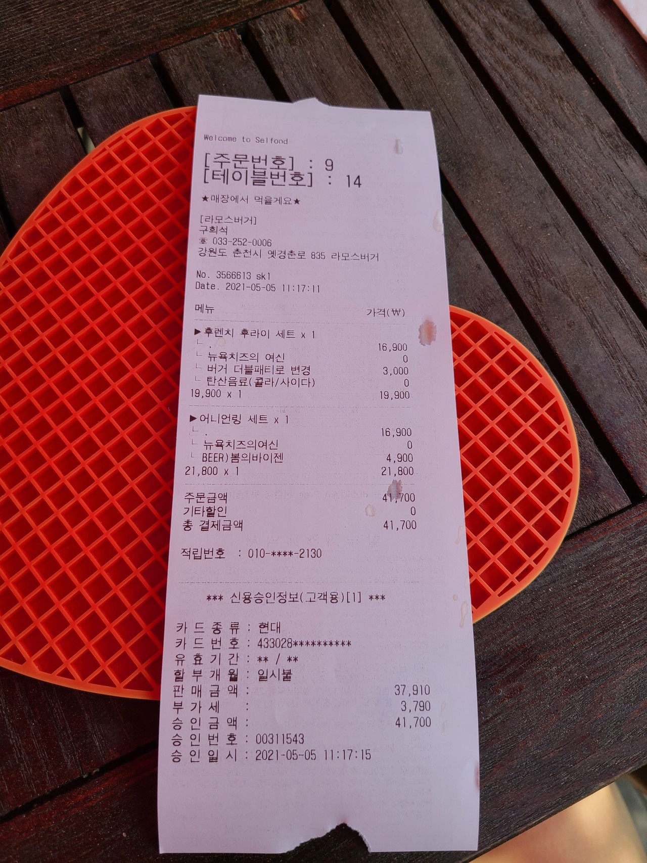 한 가지 아쉬운 점이라면 음식의 서빙 텀이 너무 길더는 점이었지만, 아쉬움을 잊을 만큼 버거 맛이 훌륭했다. 다음에 춘천에 라모스버거에 방문해 나고야버거를 주문해 보고 싶다. 춘천에 사시거나 춘천을 방문할 계획이 있다면 라모스버거를 방문해 볼 것을 추천한다.