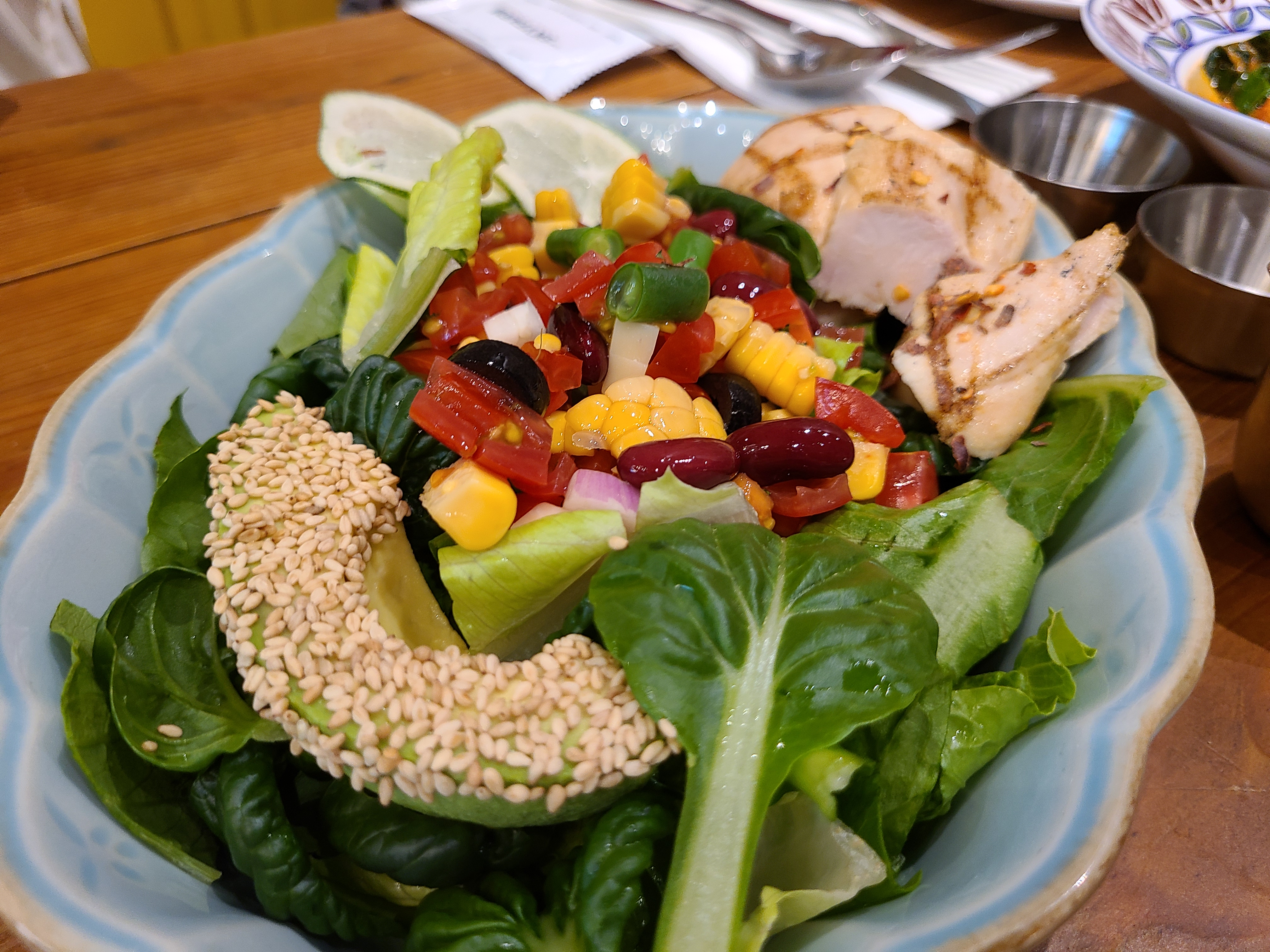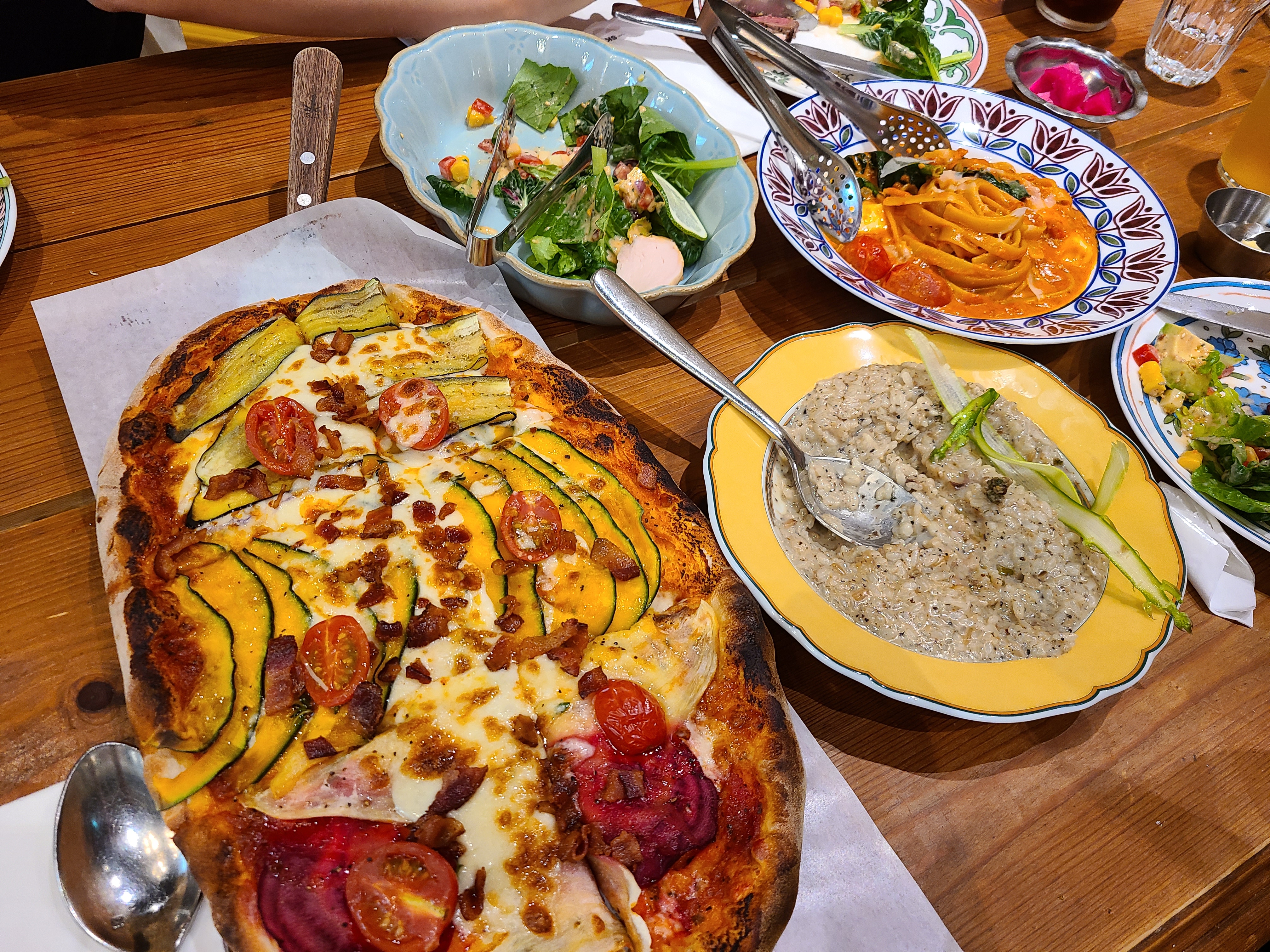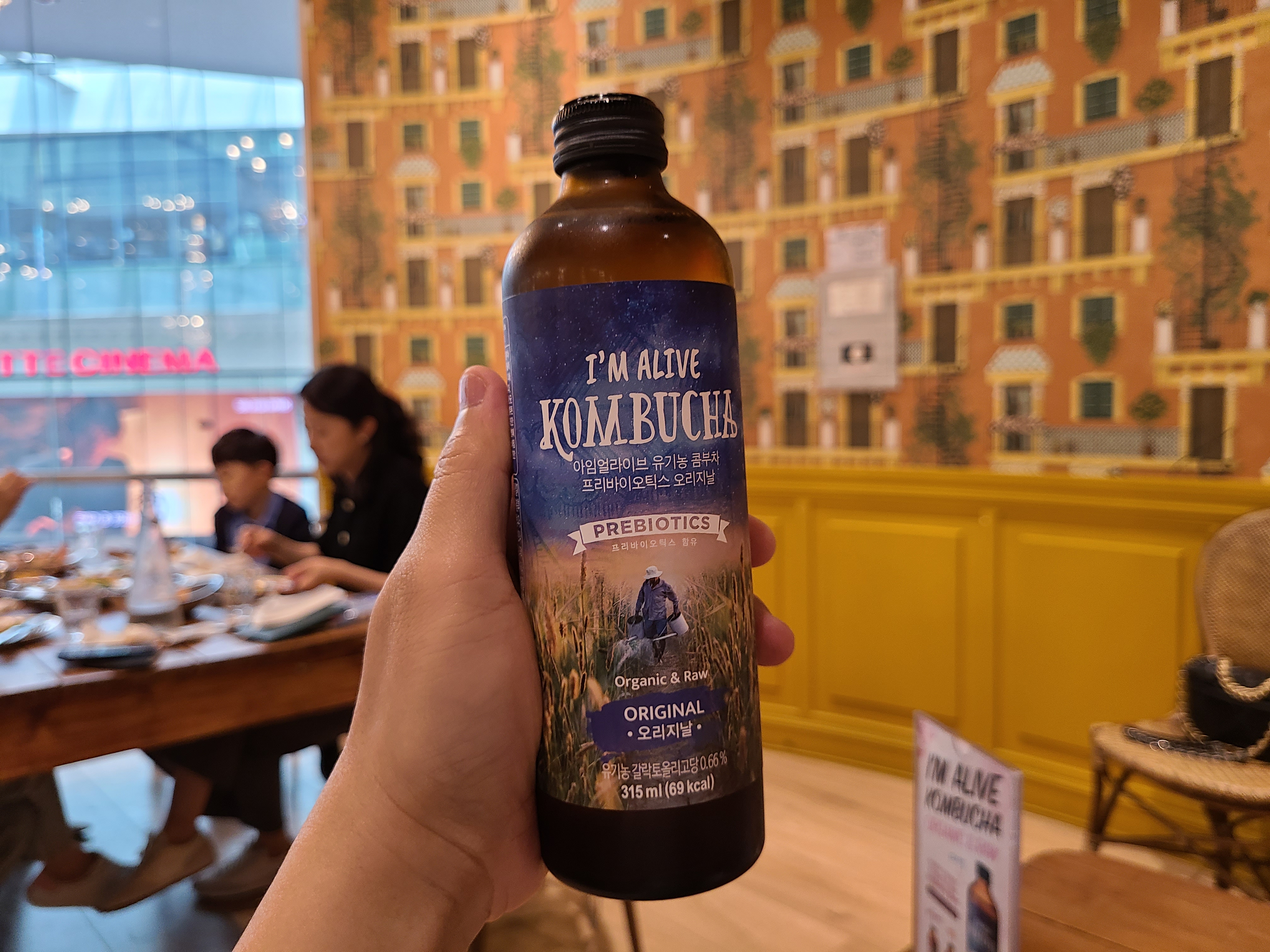 브런치 맛집이라는 소문을 듣고 왔기에 무엇을 먹을까 너무 고민이 되었다. 세트와 단품 중 고민하다가 단품을 주문하기로 했다. 우리 일행은 4명이어서 샐러드, 피자, 파스타, 리조또 하나씩을 주문하기로 했다. 샐러드 중에서 콥 샐러드, 피자는 라따뚜이 피자, 파스타 중에서는 로제 모짜렐라 페투치니, 리조또는 스테이크 리조또를 선택했다. 음료는 콜라와 콤부차 오리지널을 주문했다.