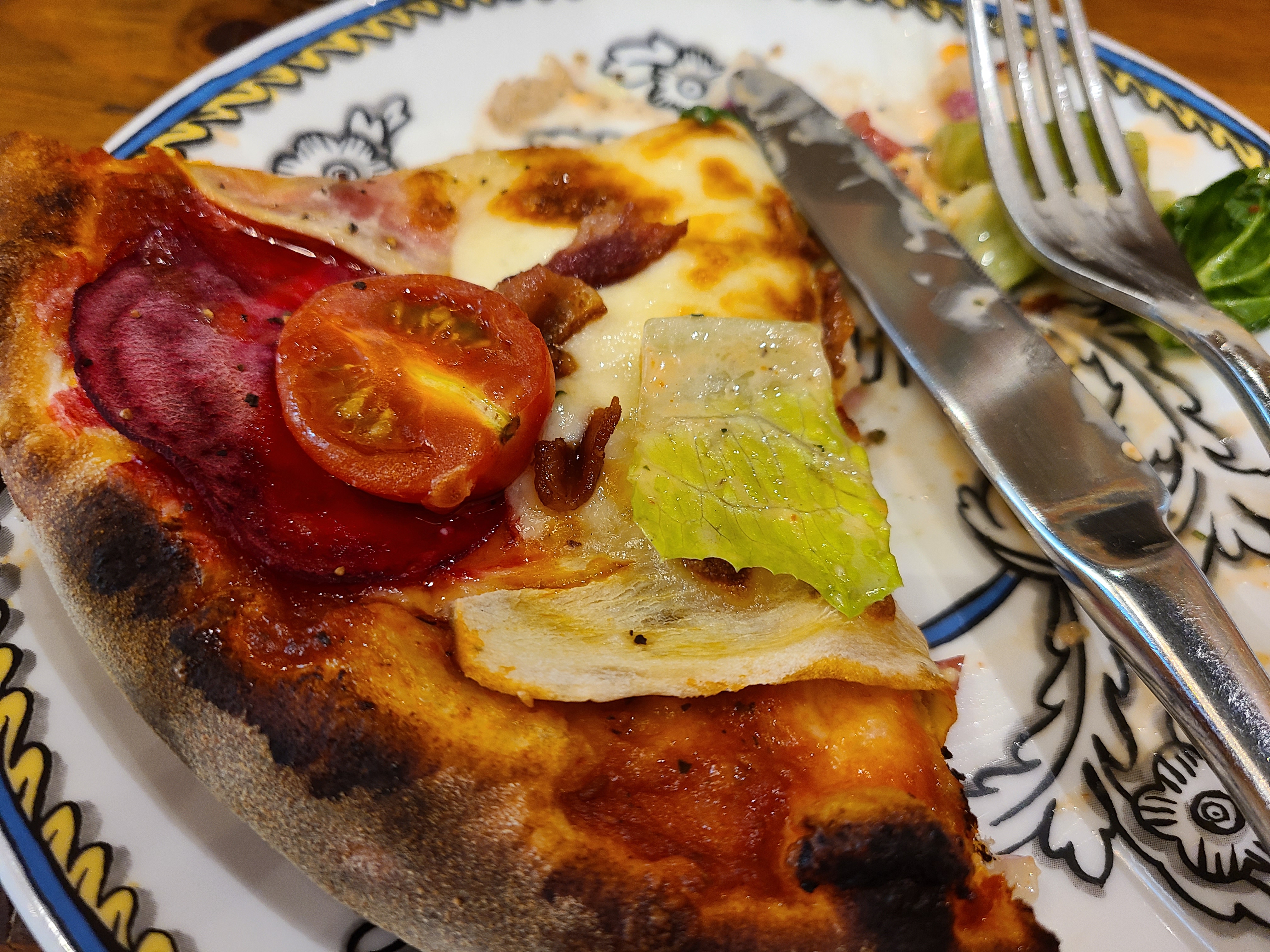 다음으로 콥 샐러드와 소스가 주문되었고, 콥 샐러드의 모든 재료가 굉장히 신선해보였다. 바로 이어 파스타와 리조또, 피자와 피클이 준비되었다. 모든 메뉴에 맛이 훌륭했다. 콥 샐러드에는 레드 빈과 옥수수, 아보카도, 케이준 치킨 양이 모두 적절했다. 평소 소스가 충분히 면에 스미지 않는 것 같아 페투치니 면을 선호하지 않는데 면의 익기는 적당했고 소스가 면안에 잘 스며있어 로제 소스의 맛을 충분히 즐길 수 있었다. 스테이크 리조또 위에 올려진 스테이크의 경우 약간 질긴 듯한 느낌이 들었지만, 리조또 자체는 크림소스와 트러플 향이 잘 어우러져 있어 풍미가 좋았다. 마지막으로 피자 이곳이 왜 잠실 브런치 맛집이자 피맥 맛집이라고 부르는 이유를 알게 해줬다. 당장 맥주를 시키고 싶었지만 아침 시간대이기에 진정했다. 다음에는 피맥을 하러 방문해 보고 싶다. 4명 모두 주문한 메뉴 한 가지씩을 최애로 꼽았고, 만족스러운 식사를 마쳤다.