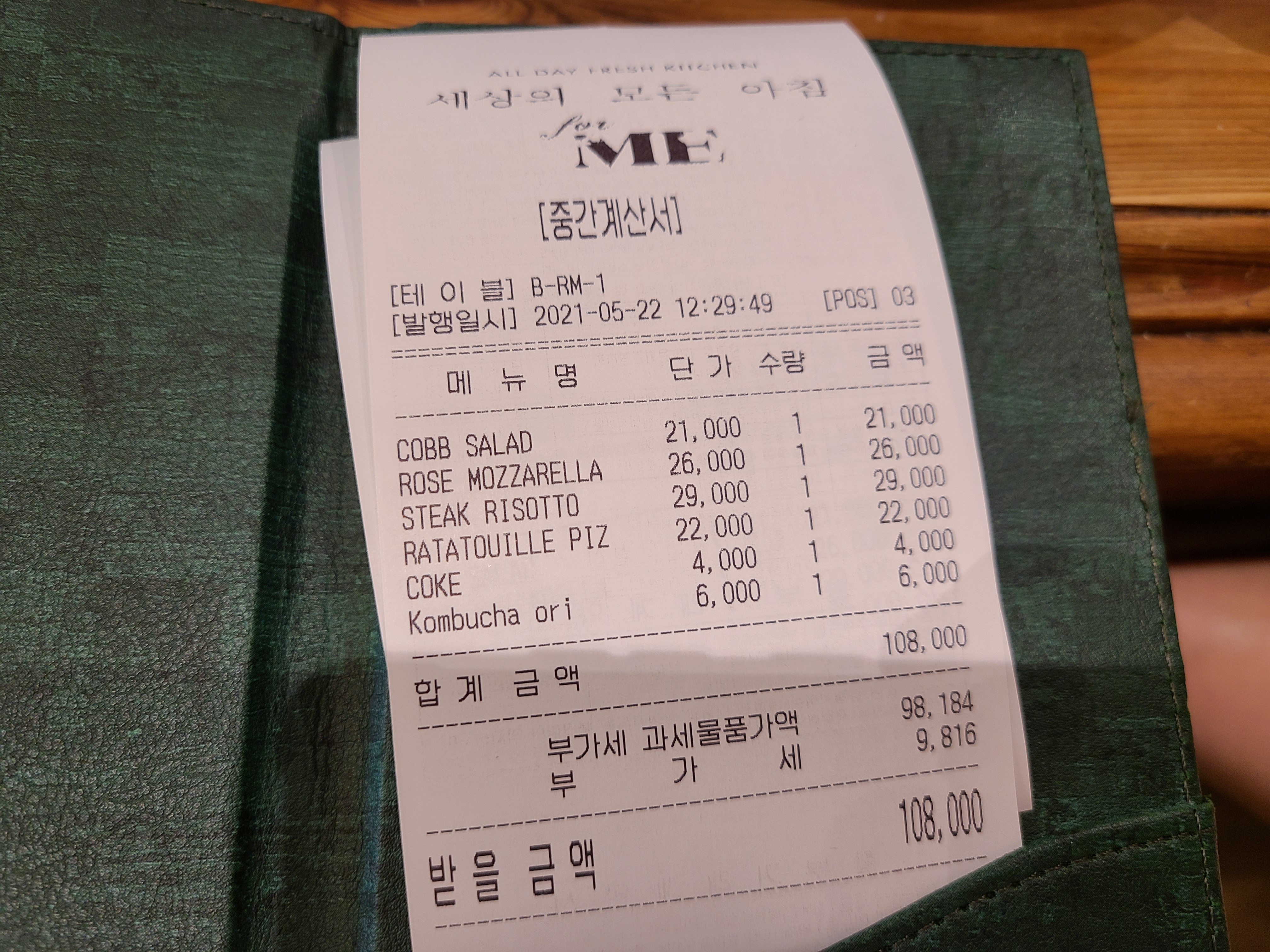 다만 우리 집 식구와 단둘이 온다면 3개의 메뉴는 시켜야 우리에게 양이 적당하지 않을까라는 생각을 했다. 대부분의 브런치 식당이 그렇듯 양이 푸짐함과는 거리가 있었다. 가격은 이 정도의 맛과 분위기를 생각하면 적당했다. 다음에 기회가 된다면 여의도 '세상의 모든 아침'을 방문해 보고 싶다.