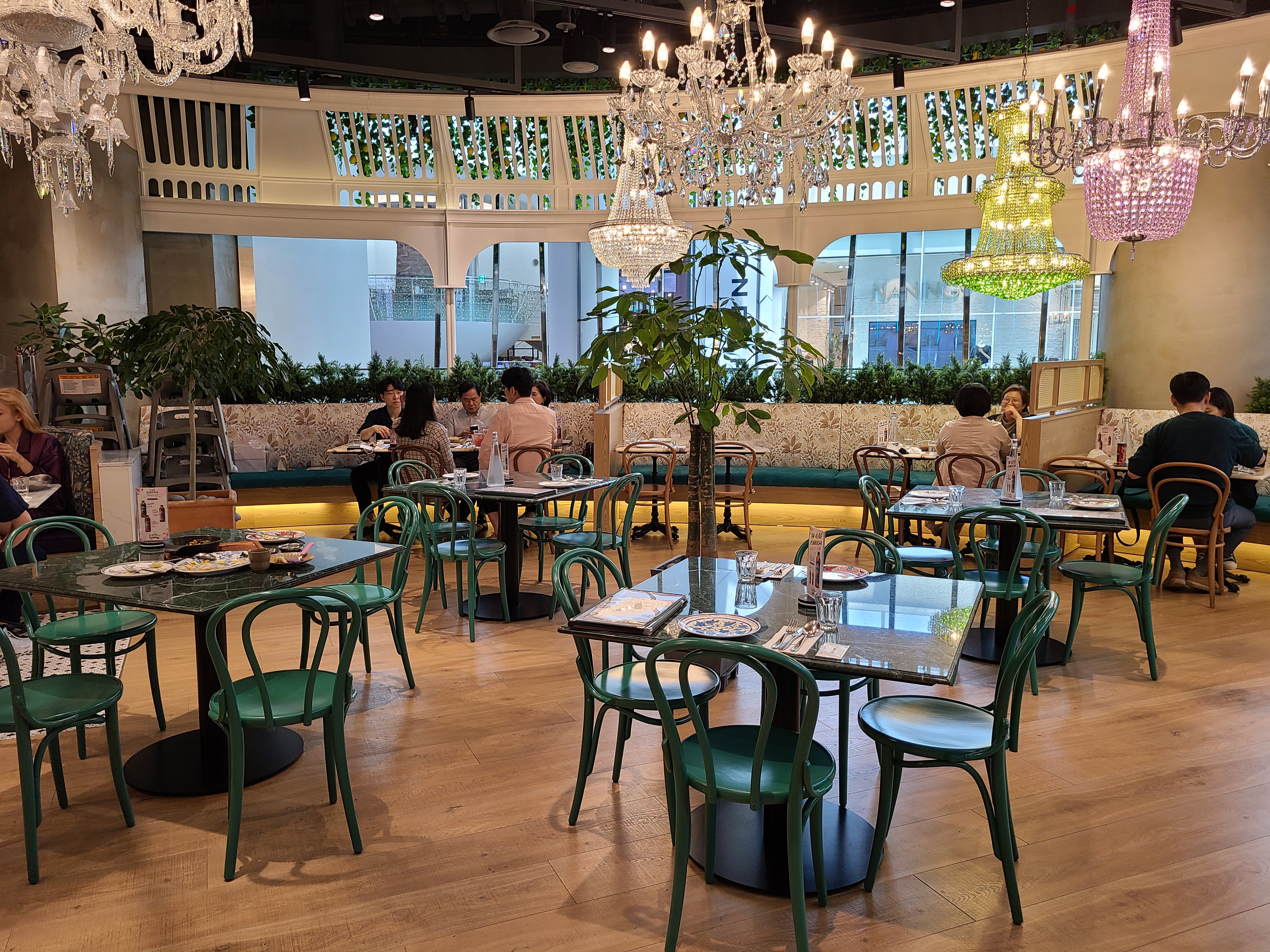 초록 초록한 외관부터 눈길을 끌었다. 토요일 오전이었지만 웨이팅 없이 입장 가능했고, 좌석이 많지는 않았지만 테이블마다 특색 있고 인테리어가 너무 예뻤다. 가장 마음에 든 인테리어는 천장에 달려있는 샹들리에였다. 직원의 안내를 받고 자리에 앉았다.