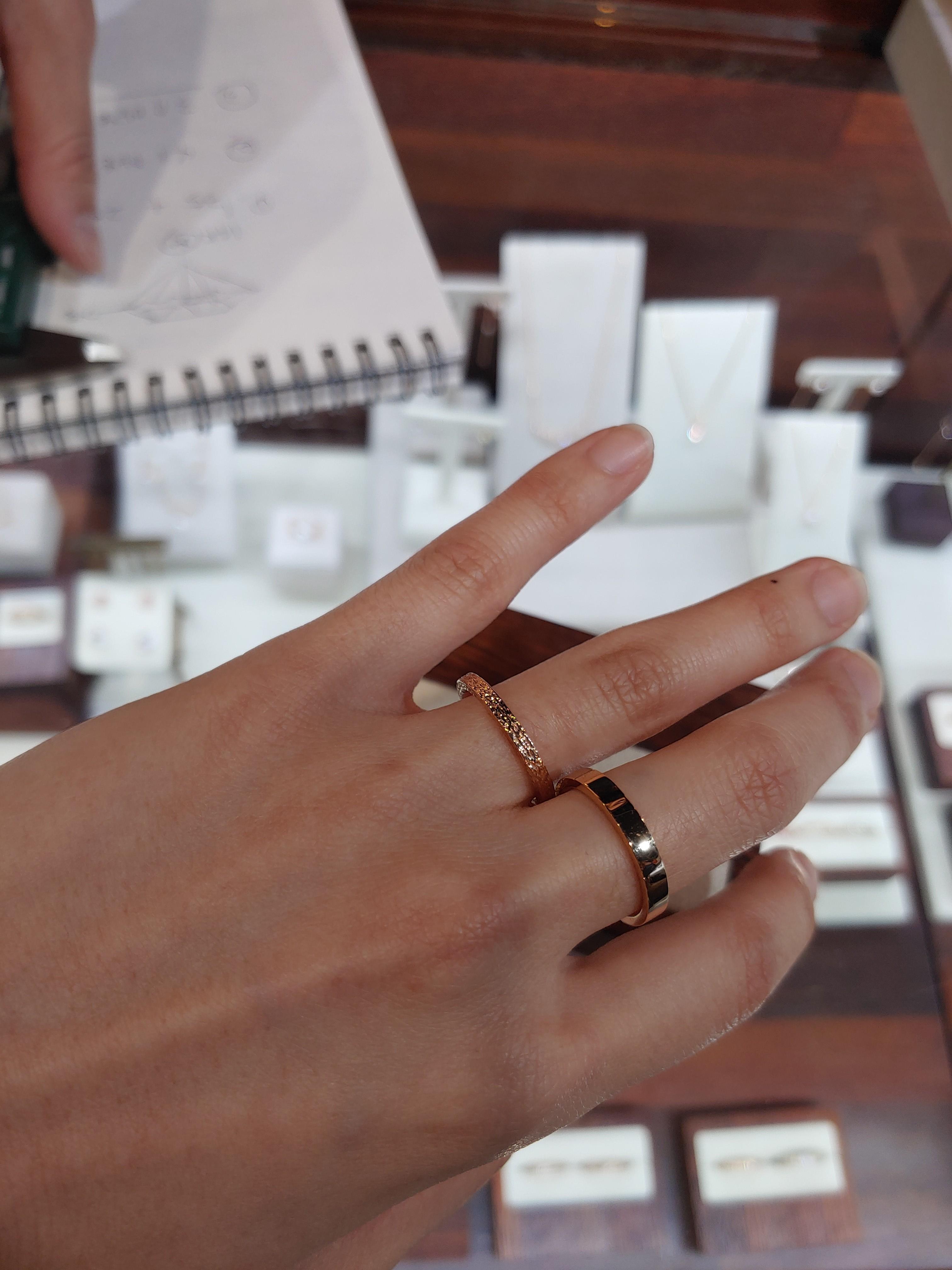 수능 100일에 다이아를 넣어 만들어 준 반지와 우정링을 두번이나 구매했는데도 잃어버린 나였기에 고가의 명품반지나 다이아 반지를 사고 싶지는 않았다. 데일리로 편안하게 유행 타지 않고 낄 수 있으면서 투박한 느낌이 들지 않고, 독특한 느낌의 반지를 찾고 싶었다. 웨딩카페와 인스타그램으로 몇 일을 폭풍 검색한 끝에 결혼한지 두달 쯤 지났을 때 쯤 정말 마음에 드는 쥬얼리샵 금방 그 자리를 찾게 되었다.